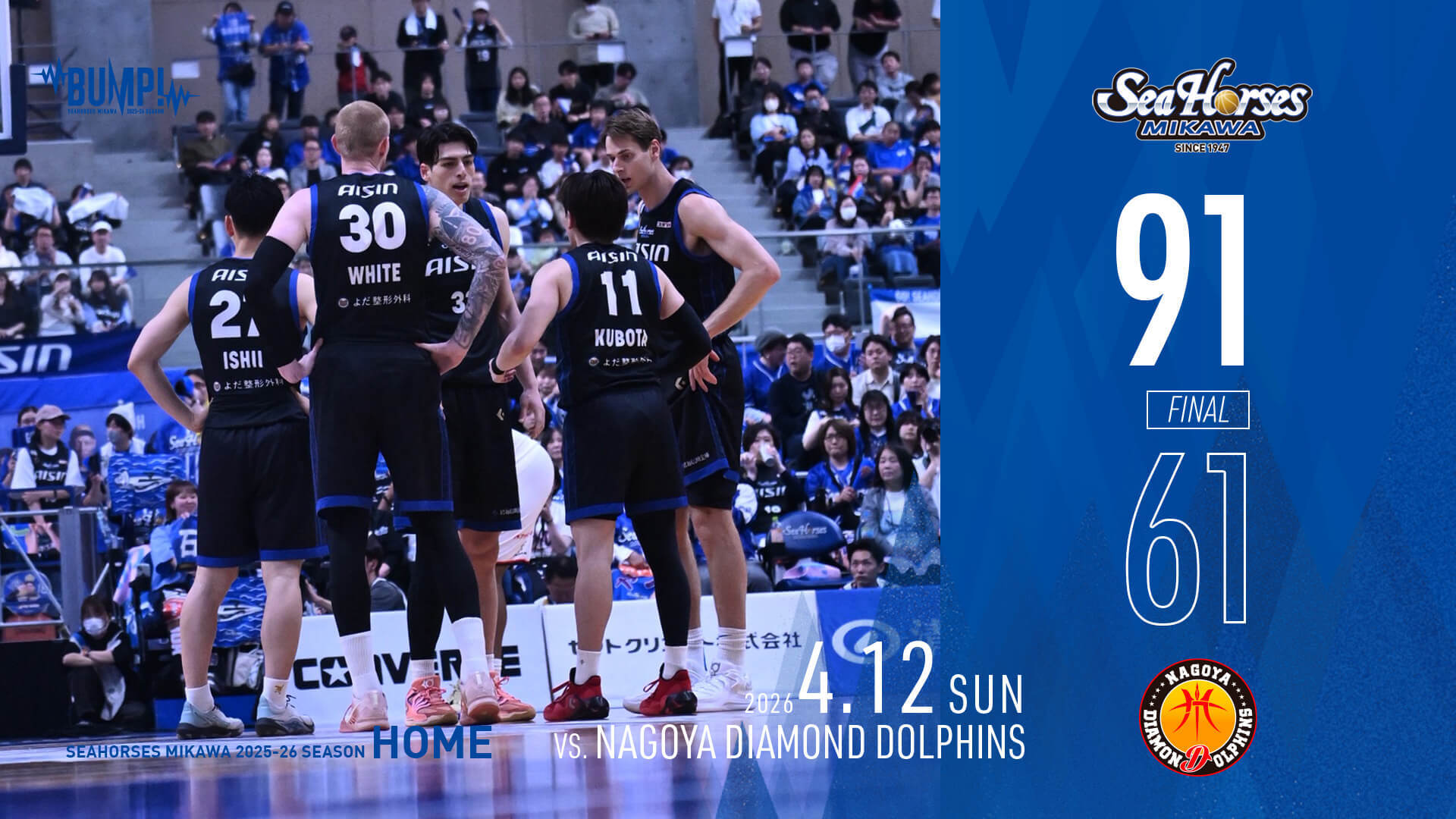 【ゲームレポート】4/11(土)第31節GAME1 vs.名古屋D