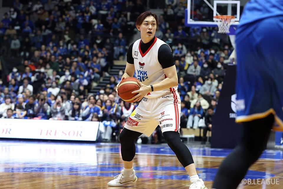#11 宇都直輝選手(富山在籍年数9年。チーム内日本人選手の中で得点平均1位。今シーズン最多はvs.A千葉の25得点)