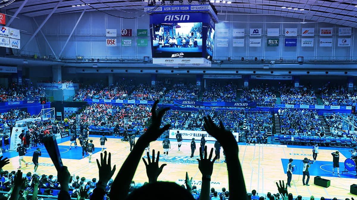 コート中央の大型ビジョンの映像と、多彩な音楽がアリーナの熱狂を演出。さらにMCが、ファン・ブースターも、初めて訪れる方も、一つになって盛り上げる!
