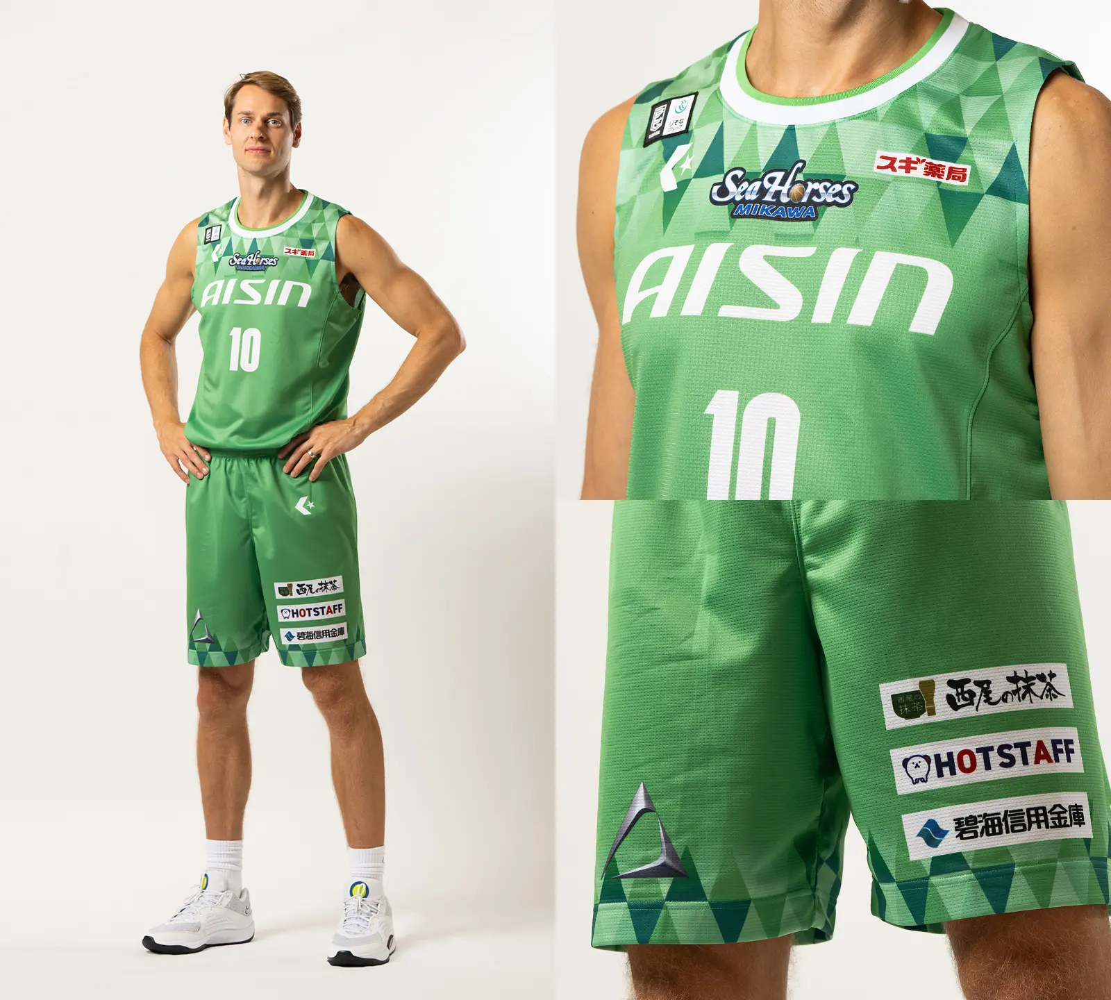 選手の胸にはシーホース三河のプライマリーロゴが輝きます。