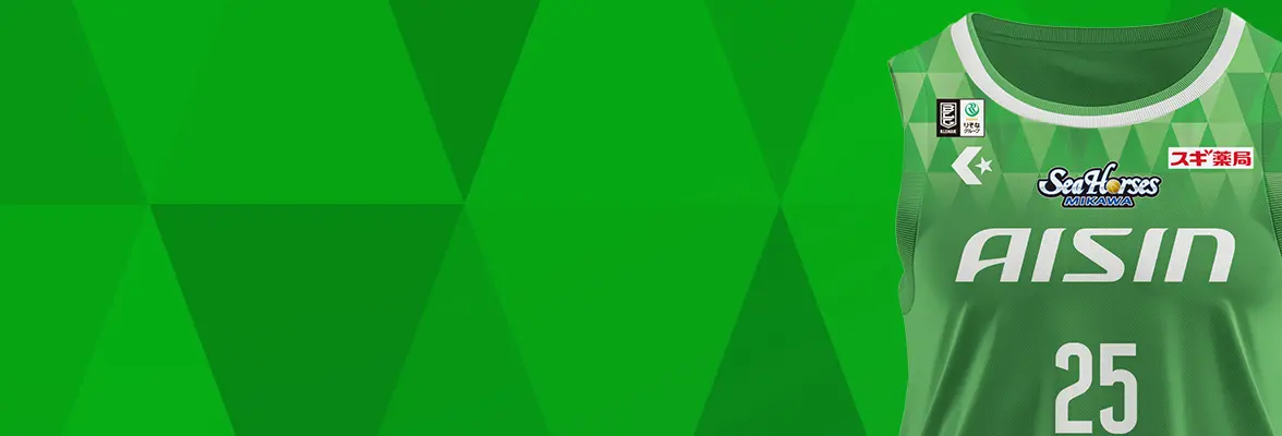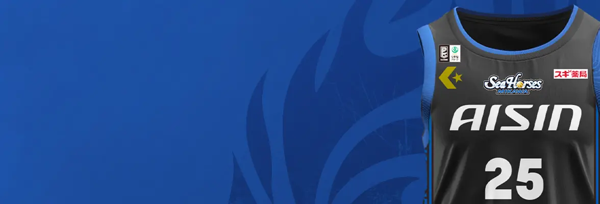 選手の胸にはシーホース三河のプライマリーロゴが輝きます。