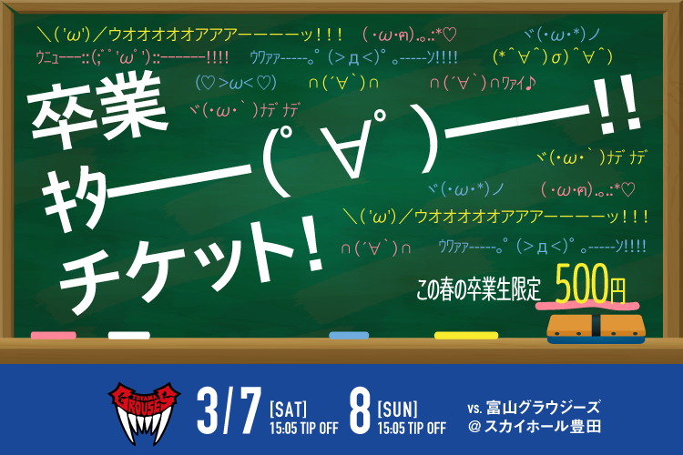 【チケット】 "3/7(土),8(日)富山戦"「卒業キタ━━(゚∀゚)━━!!チケット!」販売のお知らせ