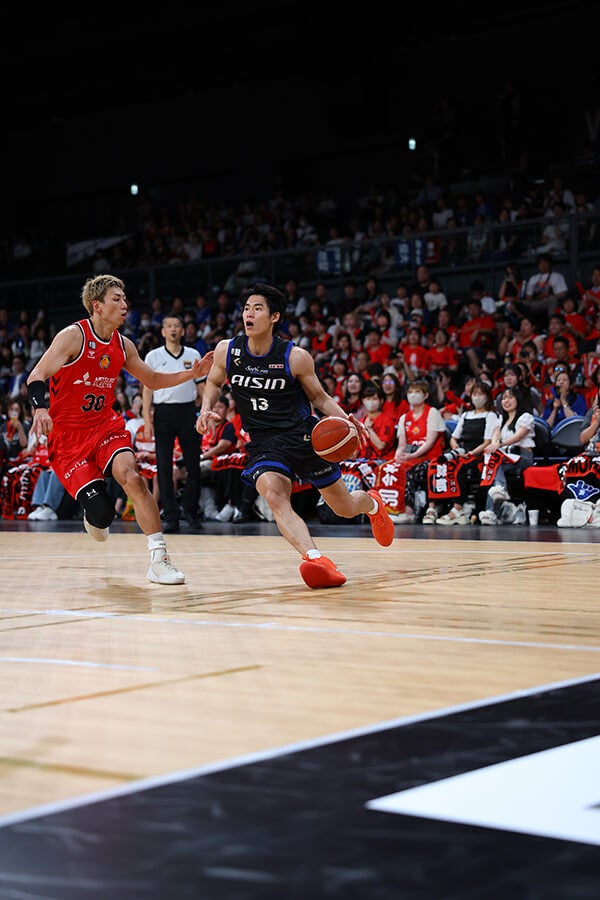 昨日はあまりプレータイムがなく少し気持ちも落ちていた部分もありましたが、自分の良さってなんだろうと考えたときにやはりディフェンスだなと思いました。今日は#11 久保田義章選手が出場できないなかで、必ず自分の時間が来ると思っていました。アップからしっかりと準備ができて、それが3ポイントだったりアシストにつながったのかなと思います。