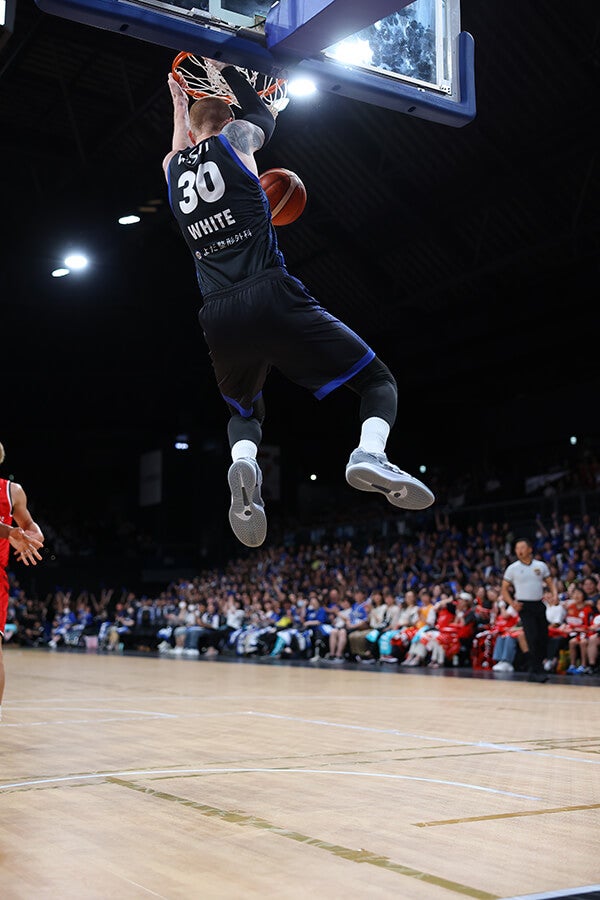 名古屋Dはタイムアウトを取るが、速い展開から#1ケネディがミスマッチを生かして加点。#7長野の高速ドライブで加点し、残り3分半にリバウンドからファストブレイクを繰り出して#30ホワイトがダンクを叩き込み、54-66と一気に二桁リードを作る。