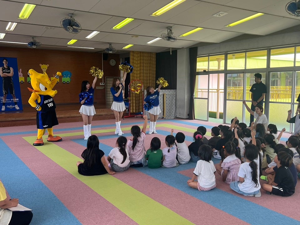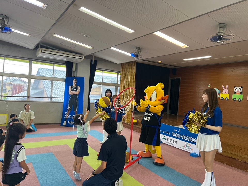 2025年9月29日(月)、シーホースくんとSuper GirlsのKAHO、RIO、MIYUUが一色保育園(西尾市)を訪問し、園児の皆さんと一緒にクイズやダンスを楽しみました。