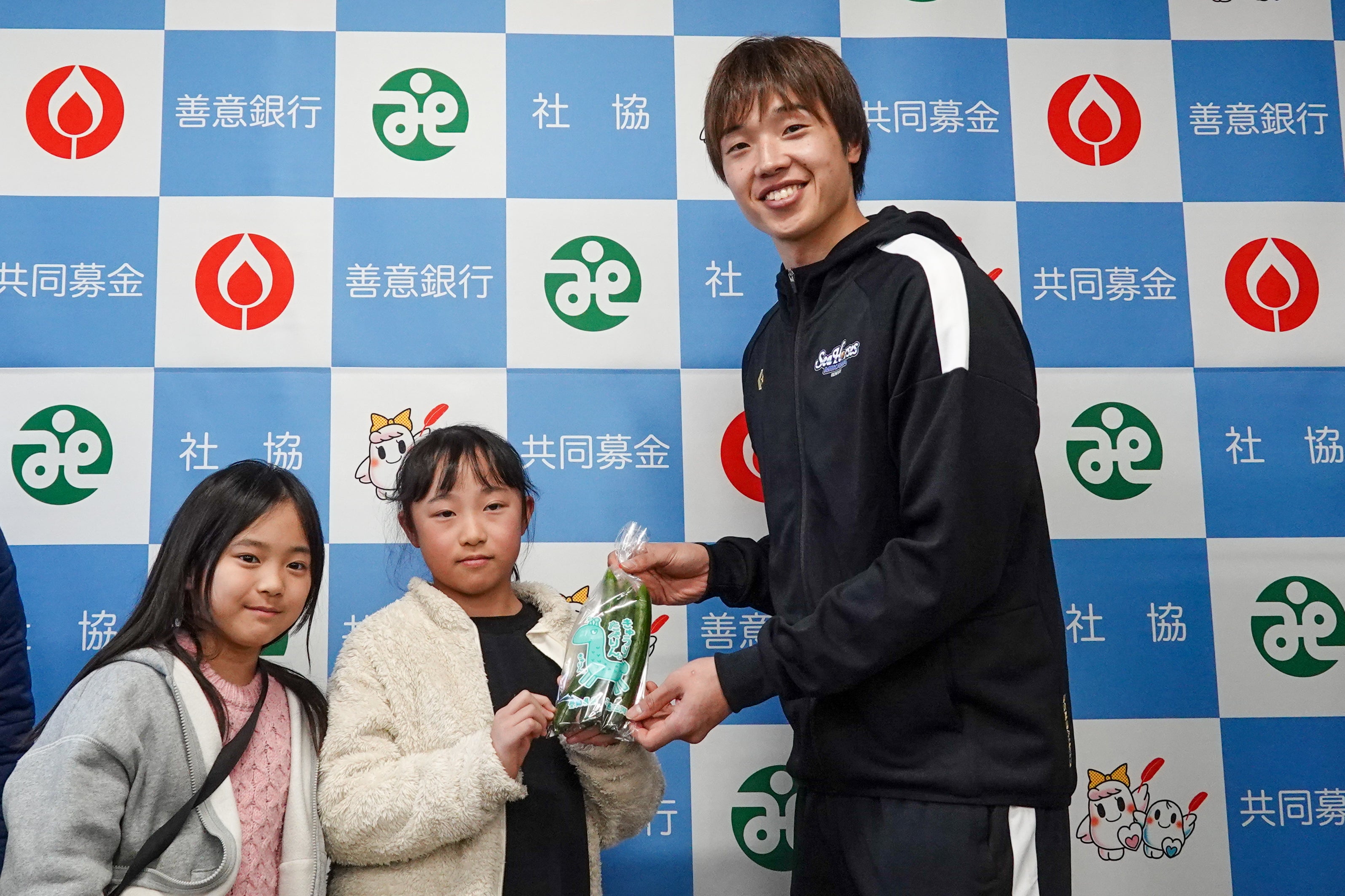 JA西三河きゅうり部会の皆さまのご支援のもと「西田のきゅうり」プロジェクトで育てていたきゅうりを、#19西田優大選手が収穫し、西尾市内のこども食堂へ寄贈いたしました。