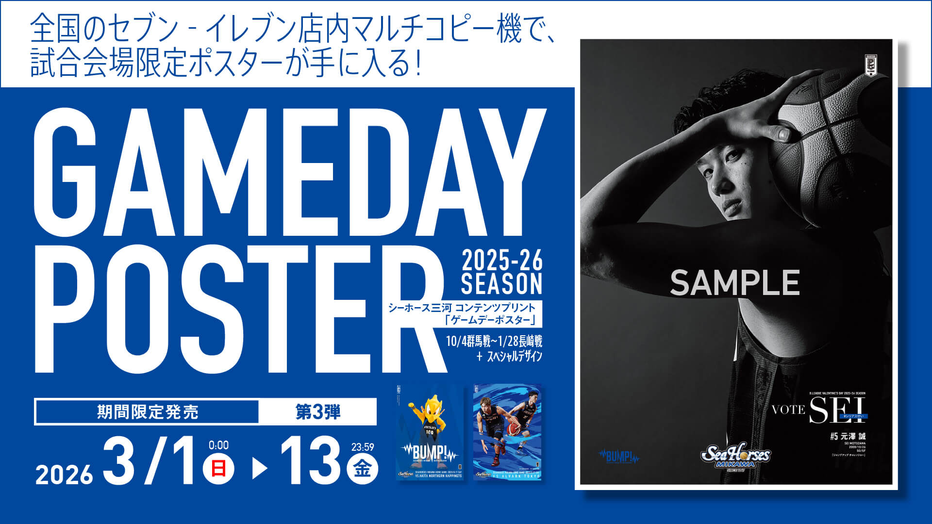 昨日より、全国のセブン‐イレブン店内マルチコピー機でシーホース三河のコンテンツプリントを発売いたしました。