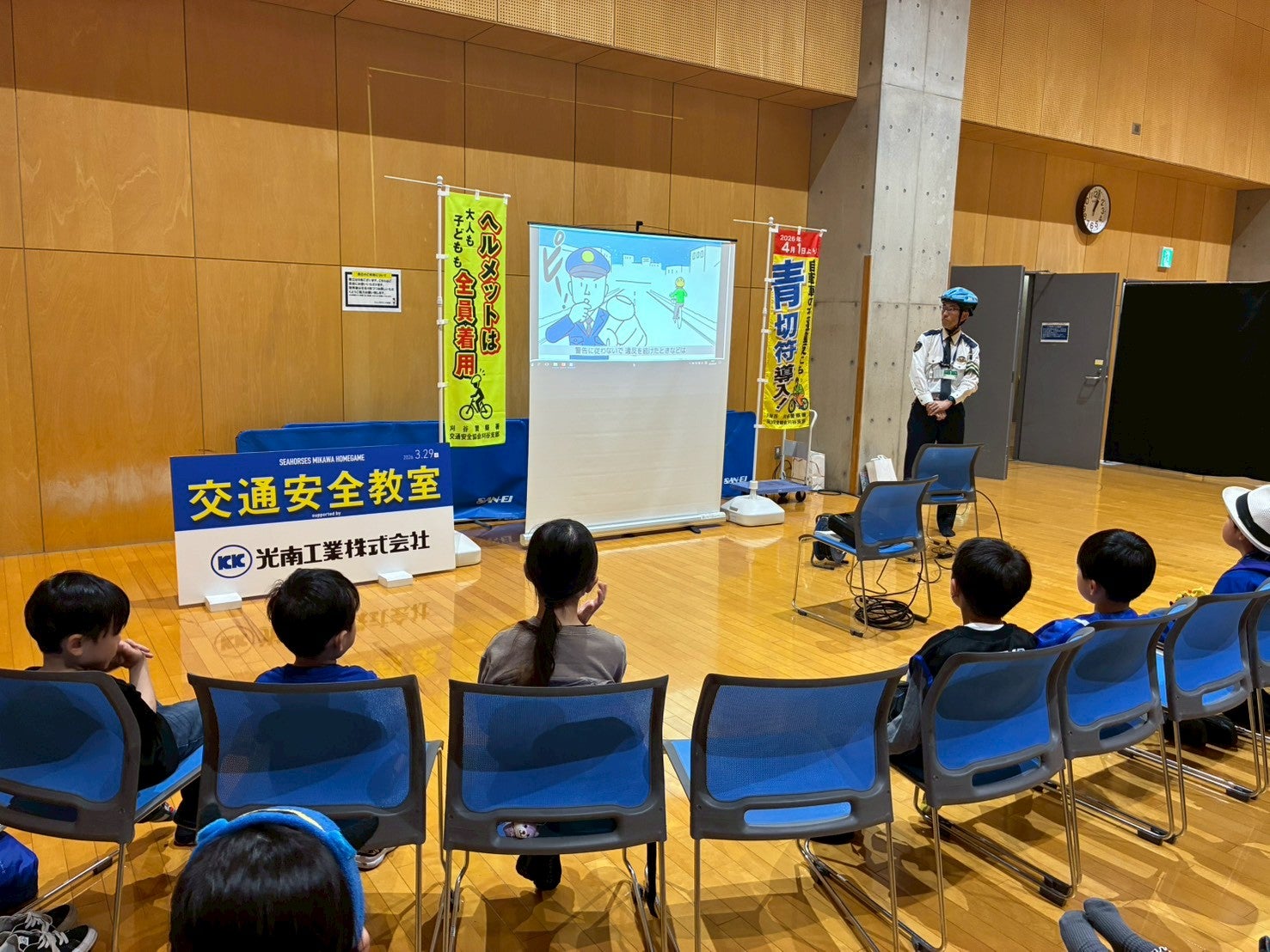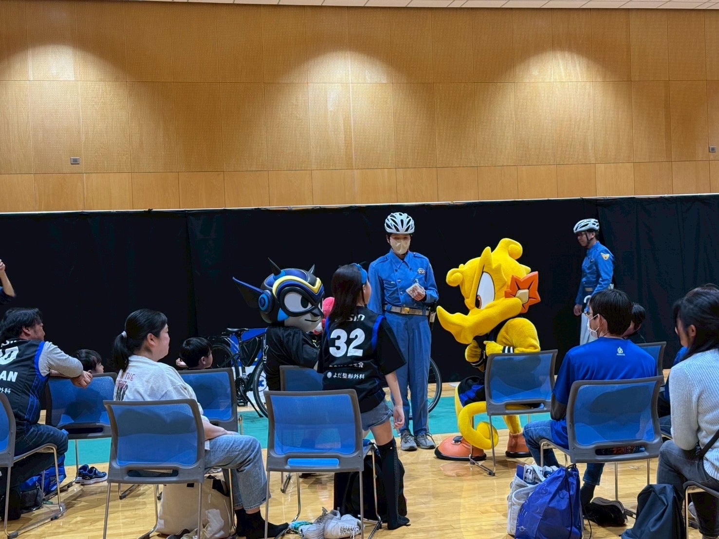 3月29日(日)川崎ブレイブサンダース戦の試合前にて、コーポレートパートナー・光南工業株式会社様の協力で交通安全教室を実施いたしました。