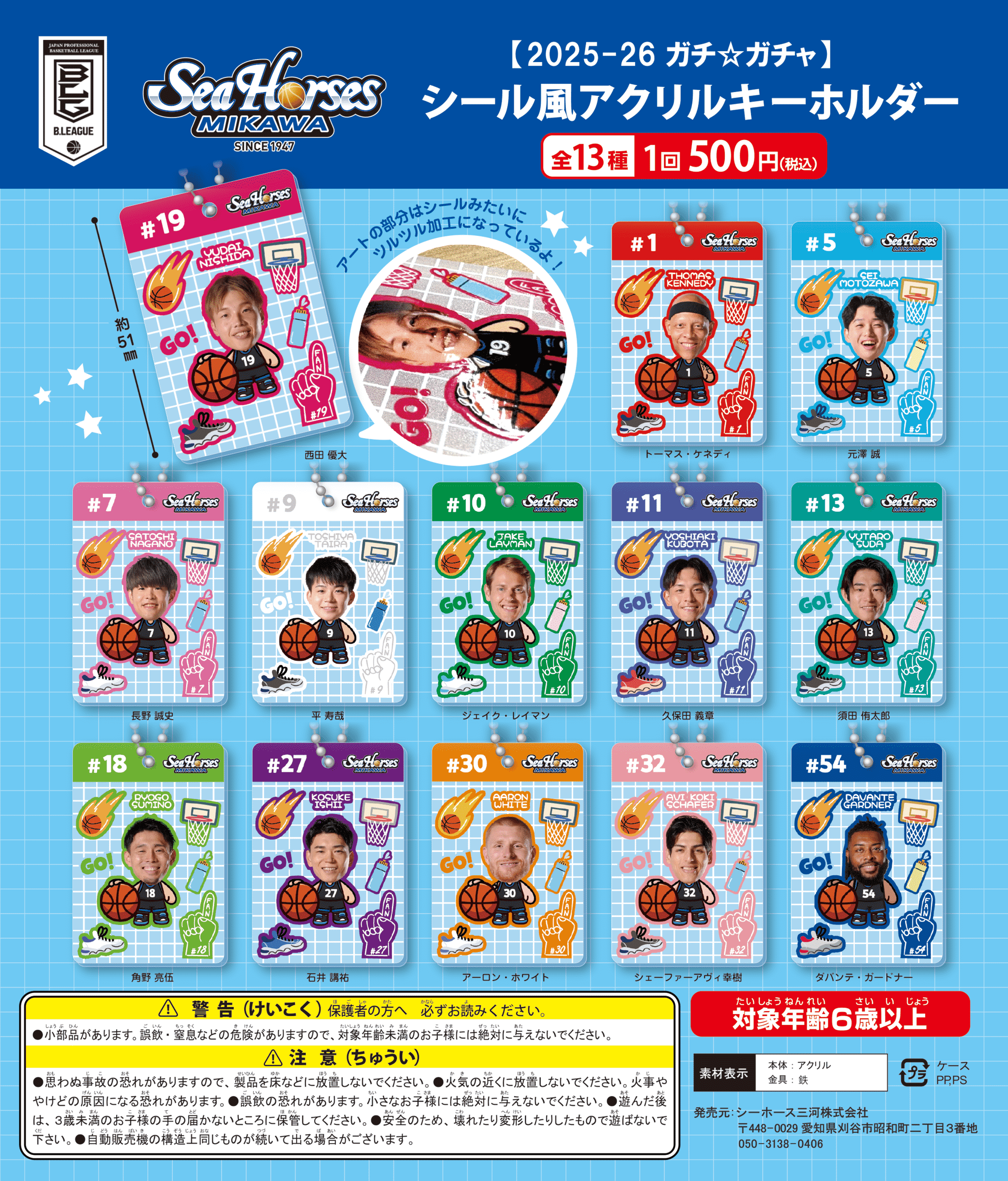・2025-26 ガチ☆ガチャ】シール風アクリルキーホルダー全13種