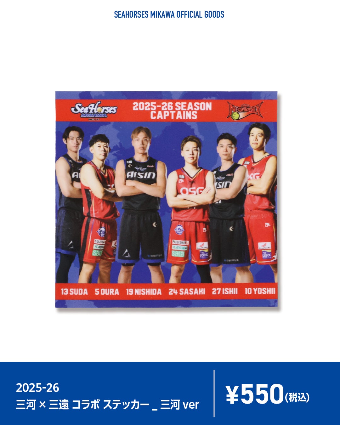 - 2025-26 三河×三遠 コラボグッズ(三河ver)は、シーホース三河グッズショップのみでの販売になります。