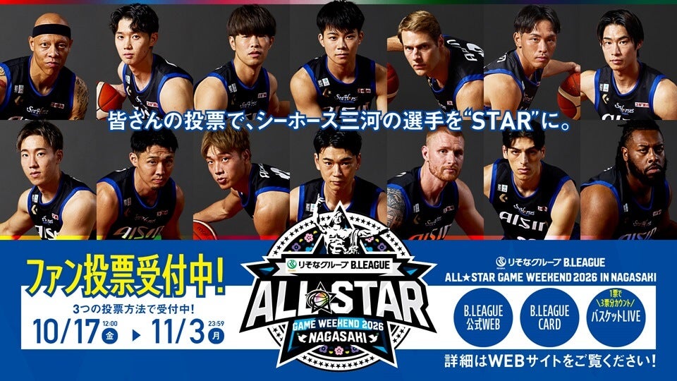 「りそなグループ B.LEAGUE ALL-STAR GAME WEEKEND 2026 IN NAGASAKI」オールスター総選挙受付開始のお知らせ