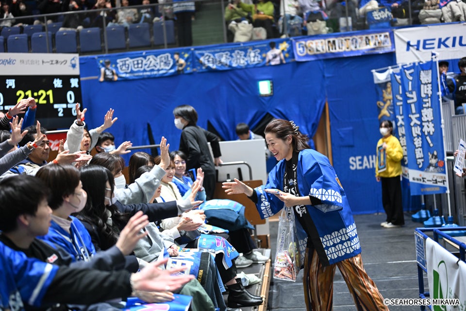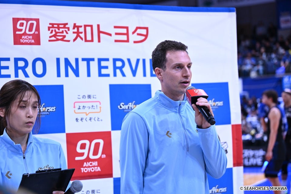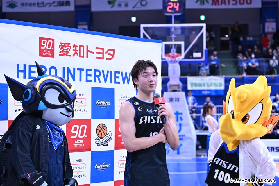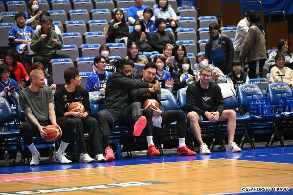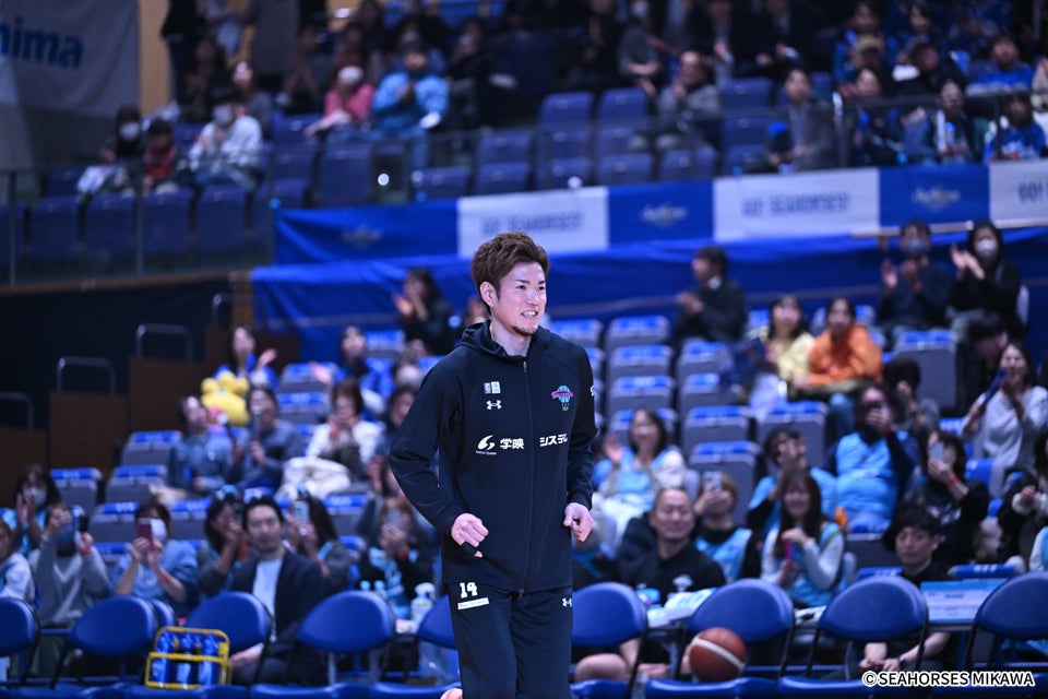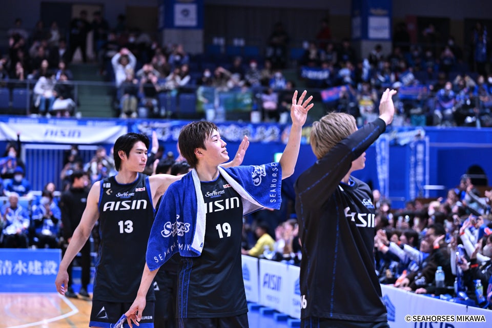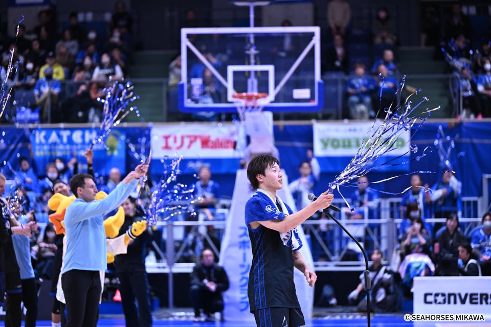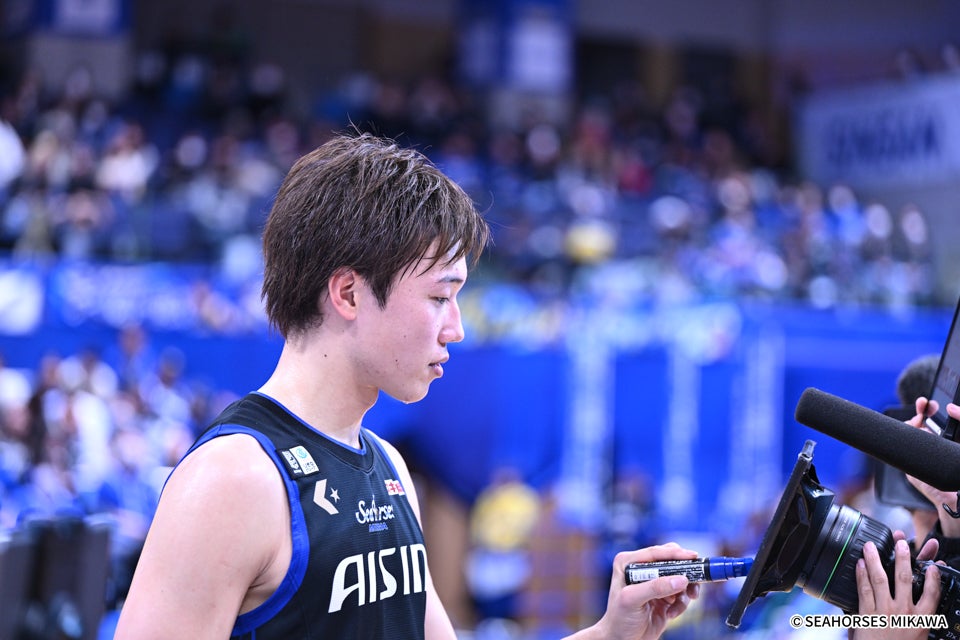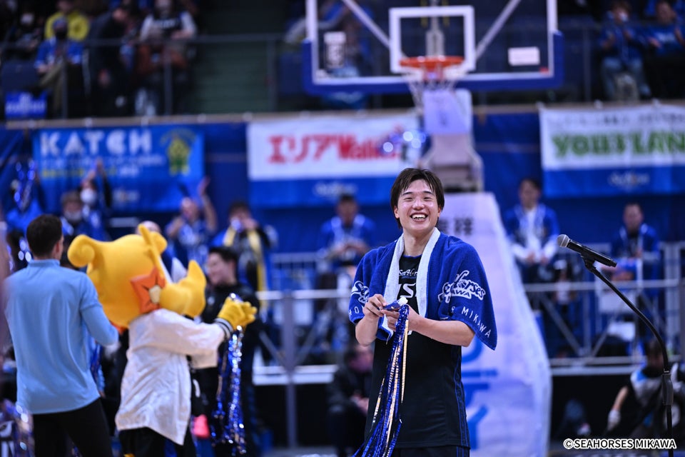 また、ファンの皆さん、いつもご青援ありがとうございます。本当に皆さんの青援が力になっています。アウェーの選手に対しても温かい青援を送るというのは三河らしくて、やっていて気持ち良いので、ぜひ秋田でもお願いします。寒いので、皆さん気をつけてお越しください。秋田でも待っています。