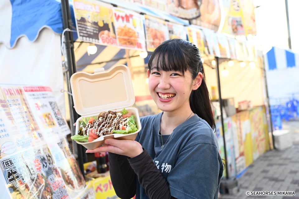 場外にはナイター恒例の「えんにちブース」が登場。グルメフェス「どんどんナイト」も開催され、魚屋の海老天丼、うなぎ丼、特選ステーキ丼などボリューム満点の丼が大集合。多くのファン・ブースターが丼をどんどん食べて、パワーチャージをしていた。