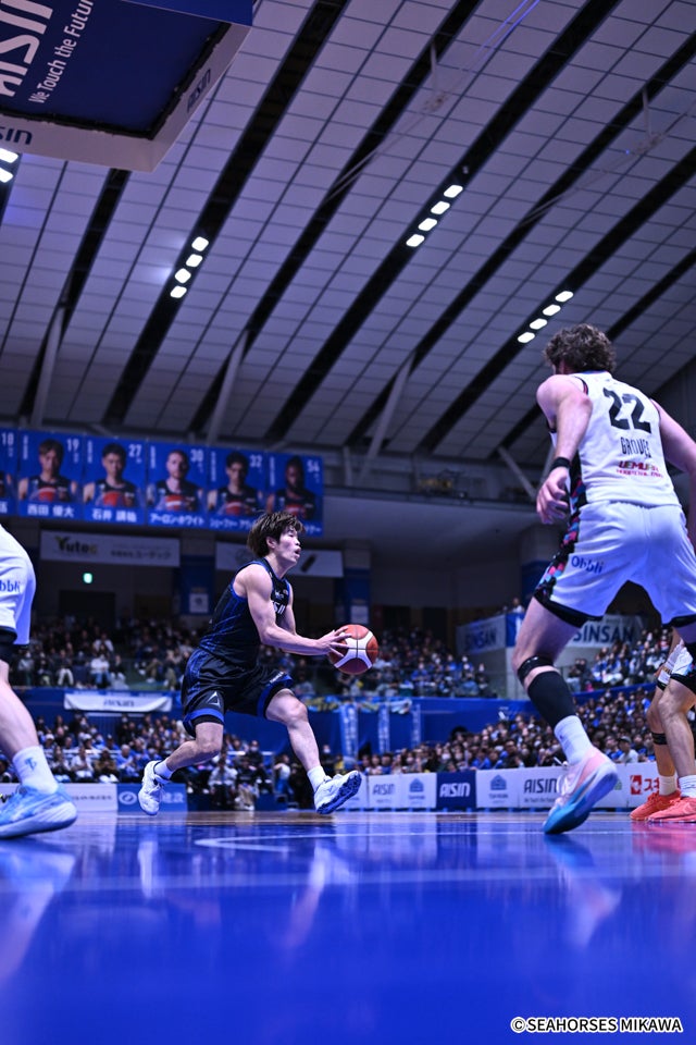前回の岡崎ゲームで一勝一敗となった相手ですし、非常にペースの速い、ディフェンスの強度の高いチームなので、アウェーになりますけど、決して受けに回らず、これから秋田さんに限らず、次のバイウィークまでいかに僕たちのやるべきことをしっかりやるかというのがすごい大事になってくると思います。