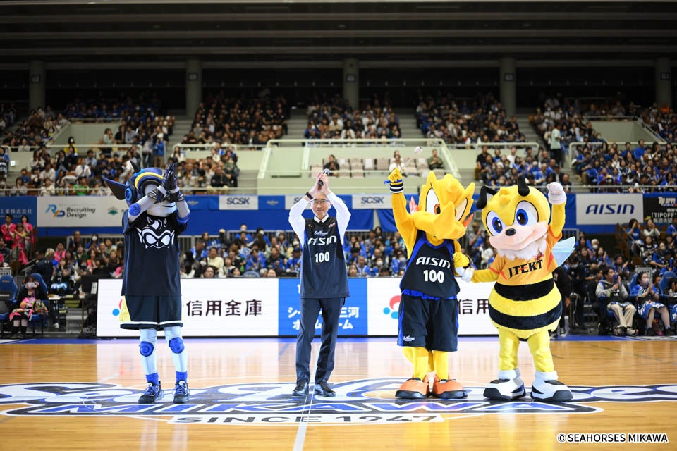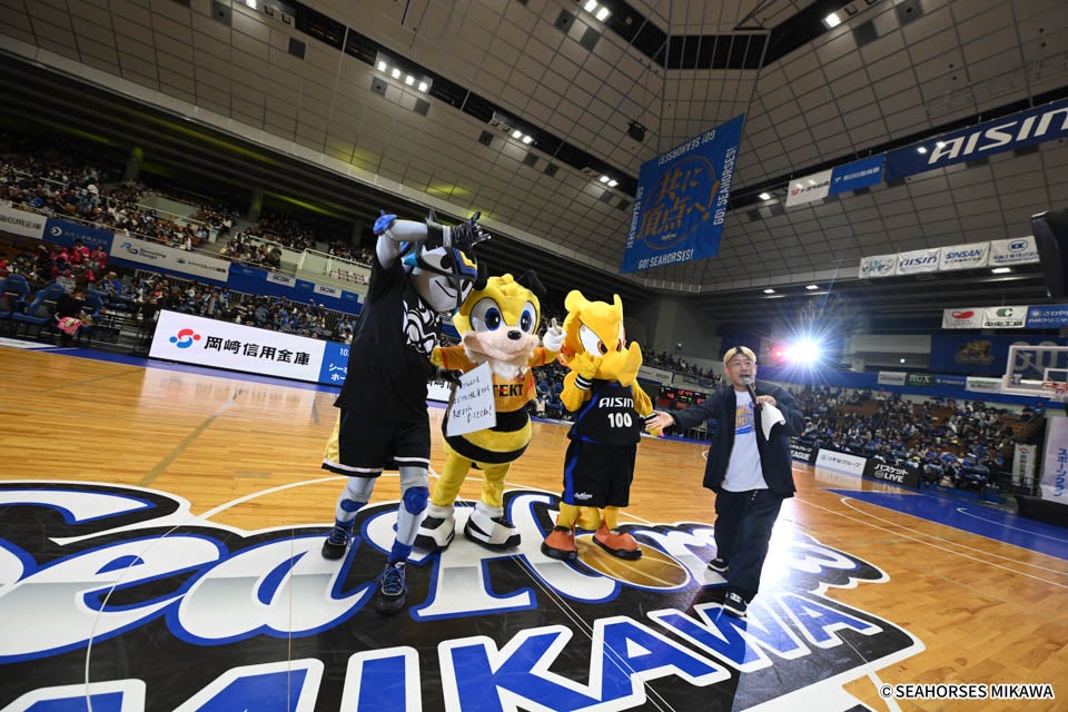 岡崎信用金庫 Presents シーホース三河ホームゲームのテーマは「マスコットDAY」。