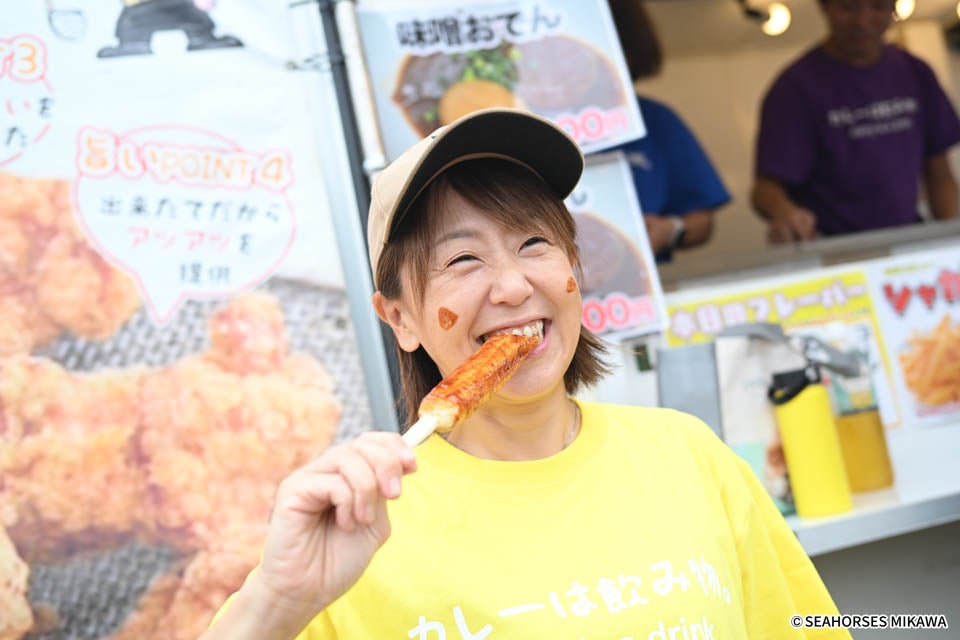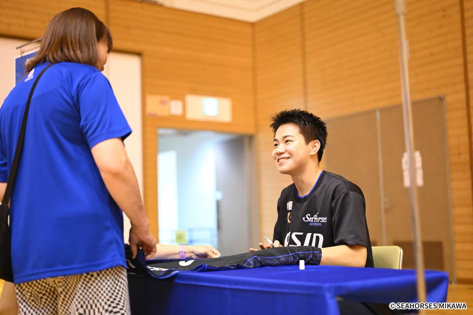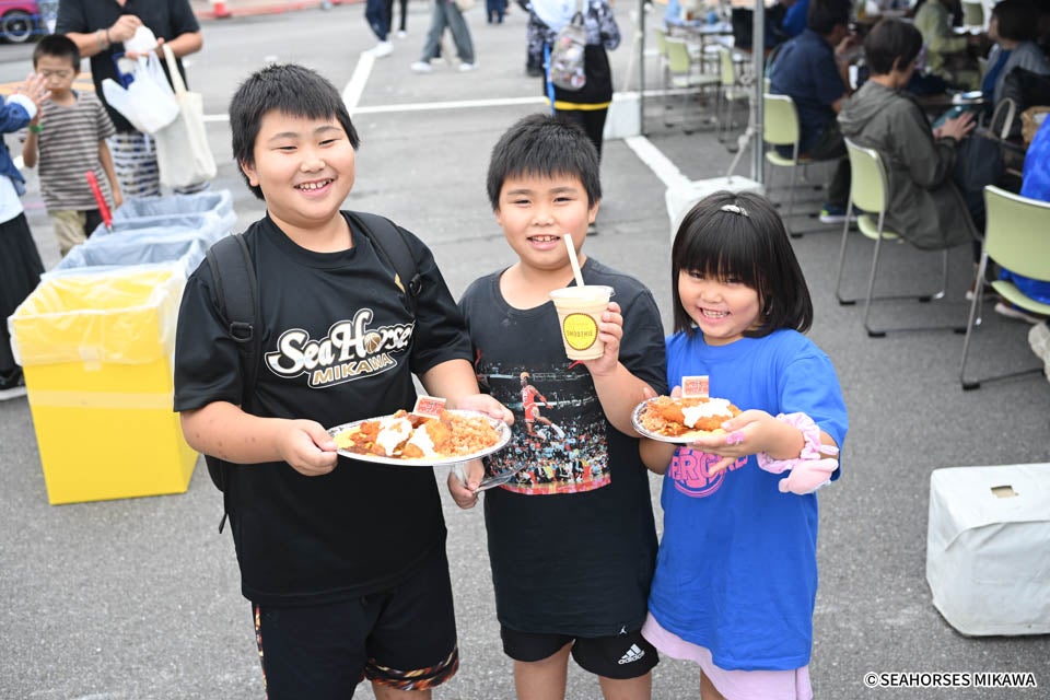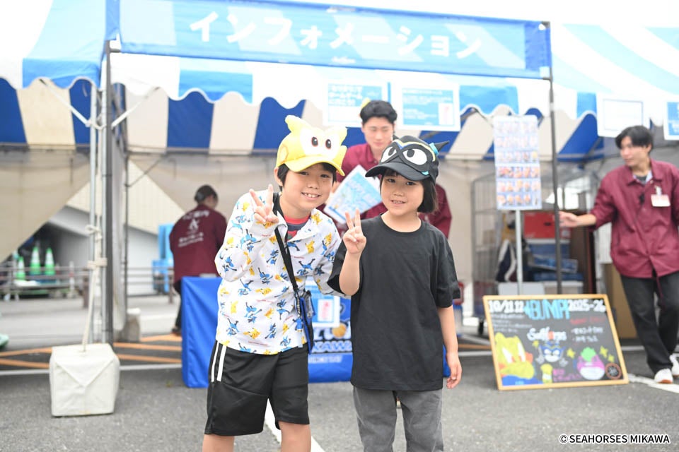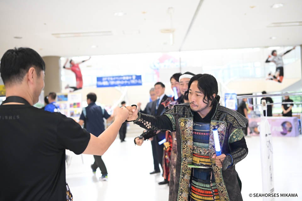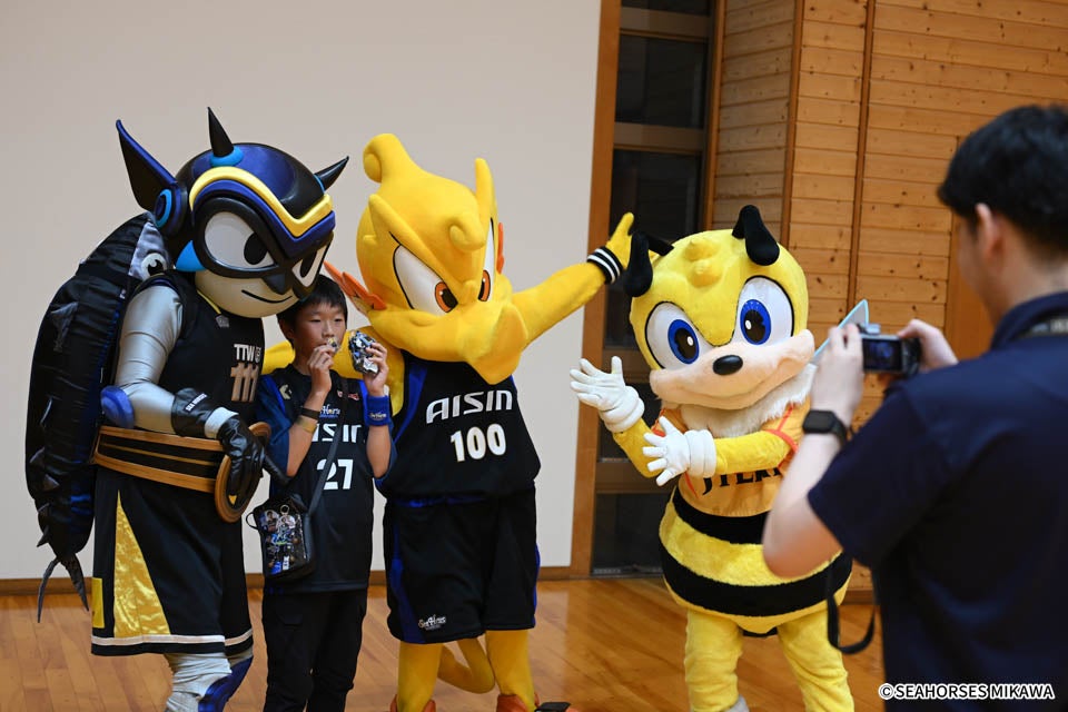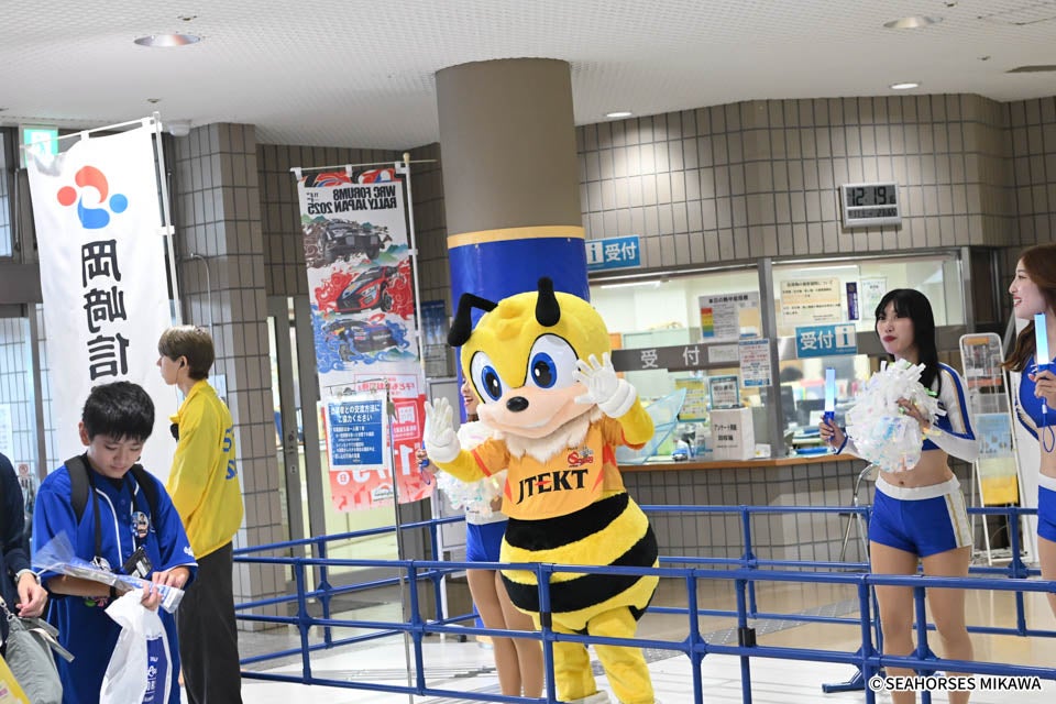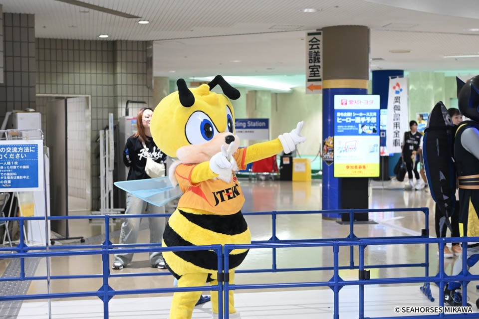 SV.LEAGUEに所属するジェイテクトSTINGS愛知のマスコット「スティンビー」が来場。お出迎えや「タツヲンtheステージ」にシーホースくん、タツヲと仲良く登場し、観客を和ませた。