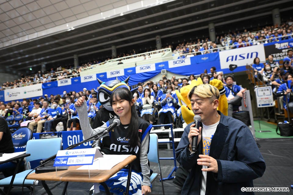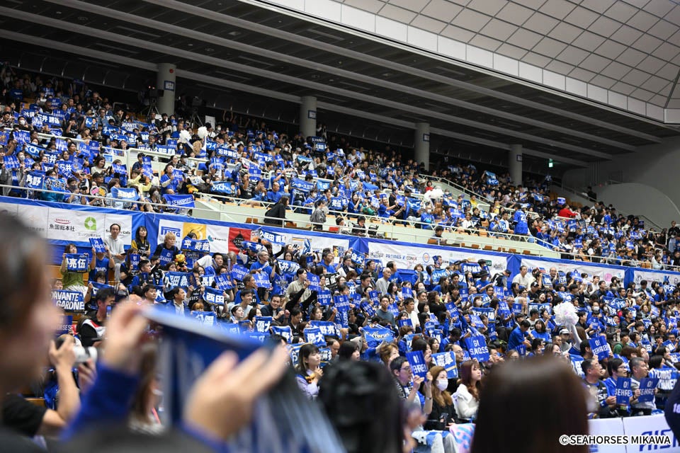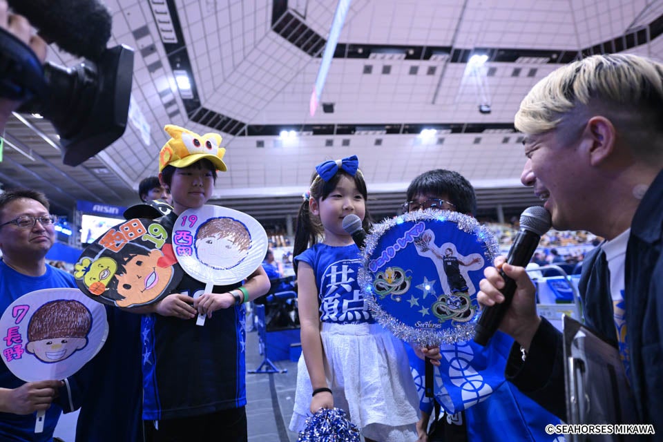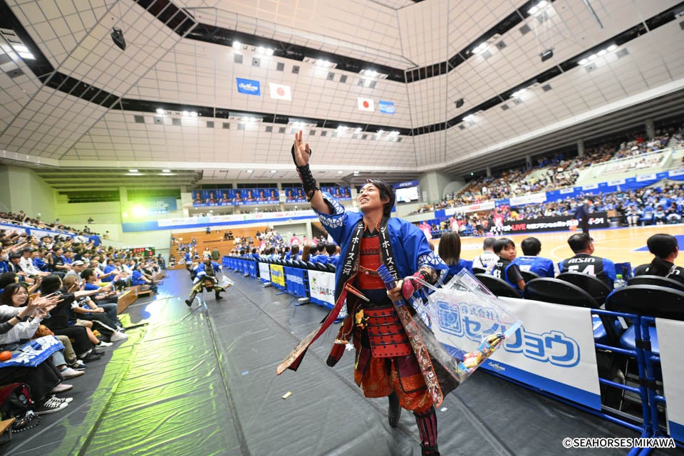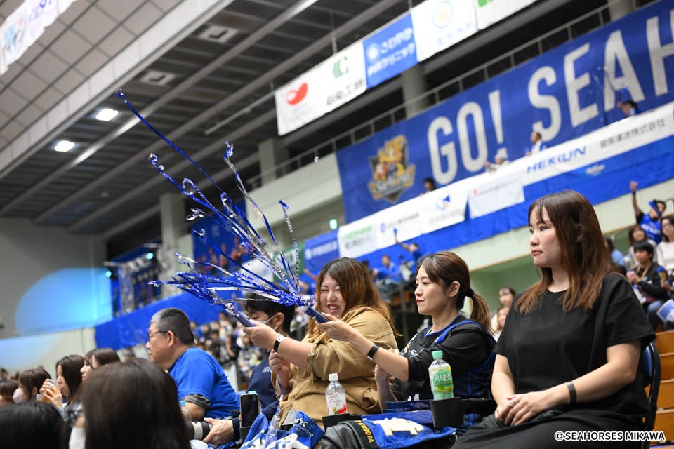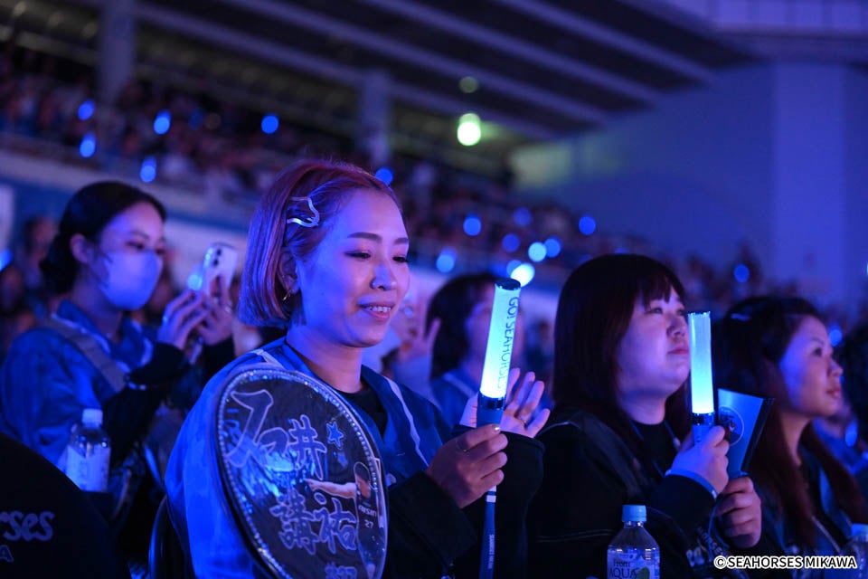 今節からオープニングやハーフタイムで、会場の音に合わせて「BLUE WAVEペンライト」が一斉に光る演出がスタート。専属チアリーダー「Super Girls」のパフォーマンスに合わせて一体感のある幻想的なアリーナが作り上げられ、会場からは感嘆の声が上がっていた。