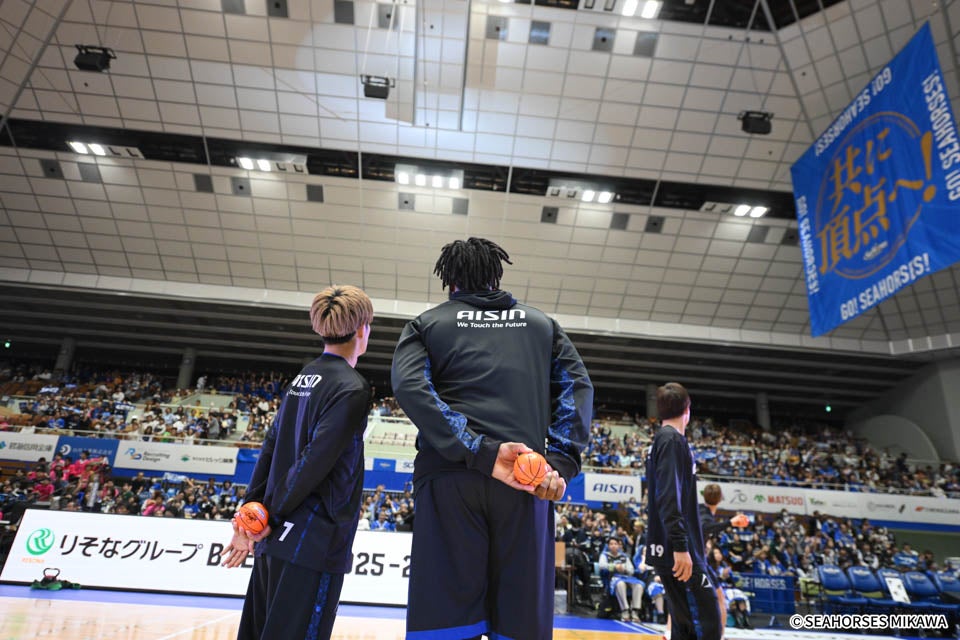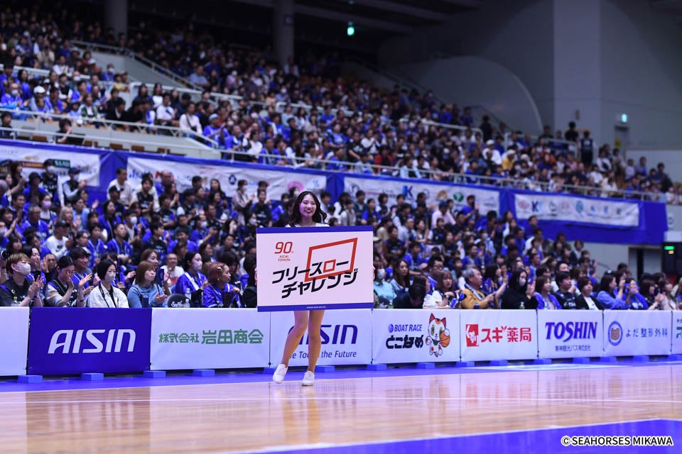 岡崎中央総合公園総合体育館で行われた秋田ノーザンハピネッツとのGame1。前半16点のリードを奪うも、後半ディフェンスの強度を上げた秋田の前に得点が伸びず。熾烈なシーソーゲームの末に1点差で惜敗した。
