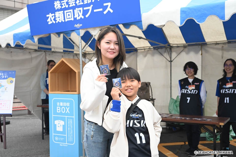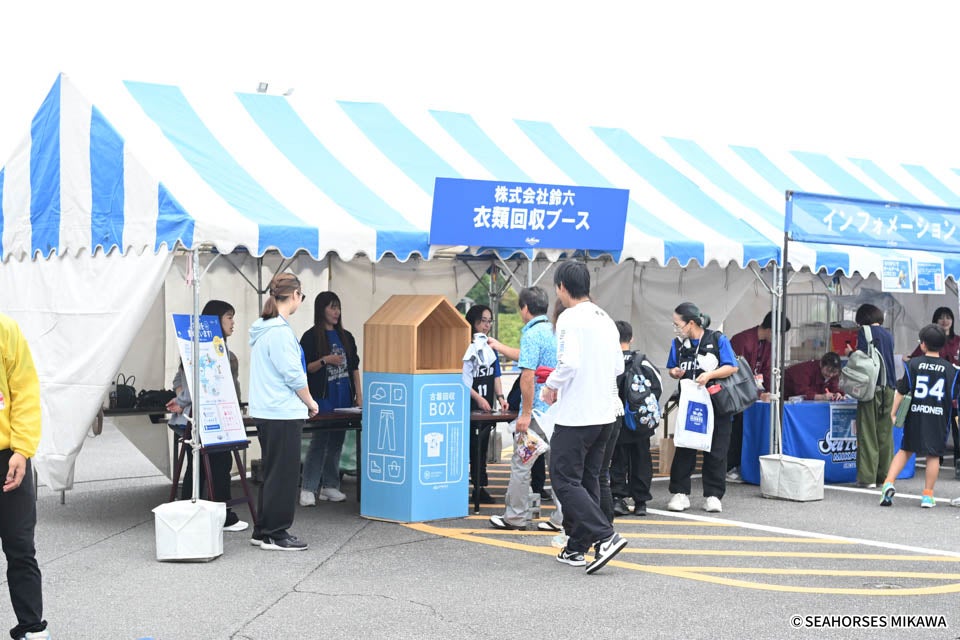 また、SDGsプロジェクト「Be With」の一環として、岡崎市にあるリサイクル会社、株式会社鈴六の協力のもと衣料回収ブースが設置され、多くのファン・ブースターが古着を持参する姿が見られた。