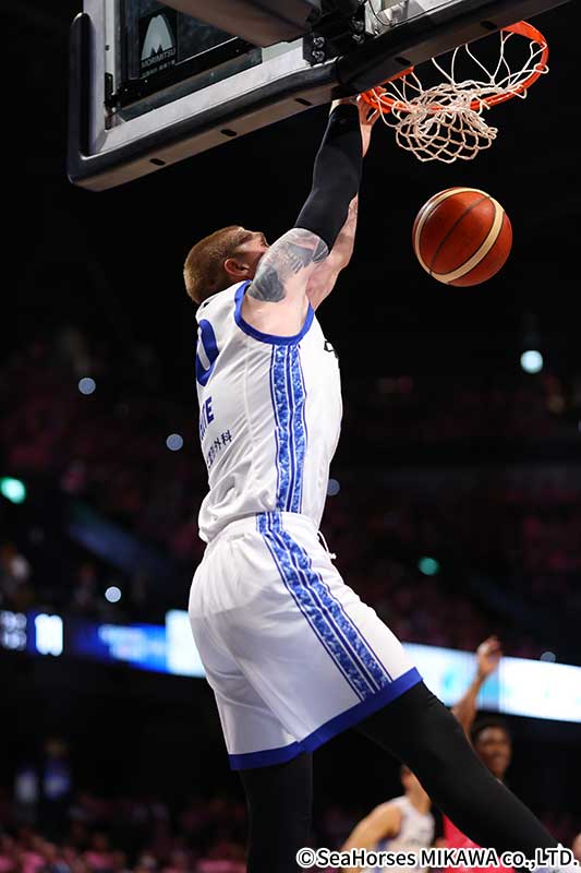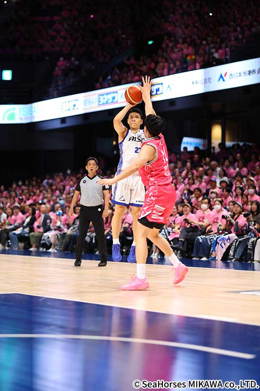 #30ホワイト、#10レイマン、#27石井の3Pシュートで反撃の意思を示すも、最後まで長崎の得点を止められず、107-82と25点差で大敗した。
