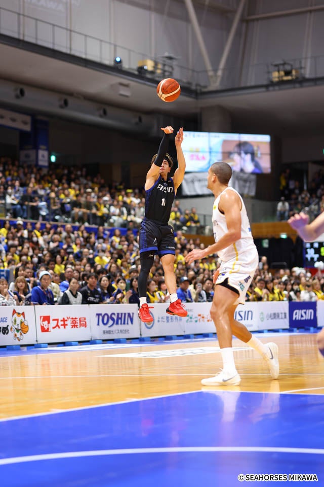 今季初となるウィングアリーナ刈谷で迎えた王者・宇都宮ブレックスとのGame1。久保田がチームハイとなる19得点の活躍を見せ、試合終了の残り4分半まで二桁リードを保ち優勢に立つが、3Pシュートを中心とした宇都宮の怒涛の追い上げを受け悔しい逆転負けを喫した。