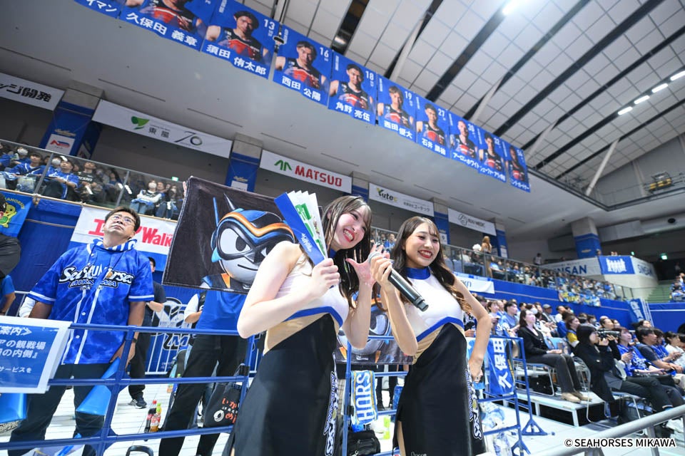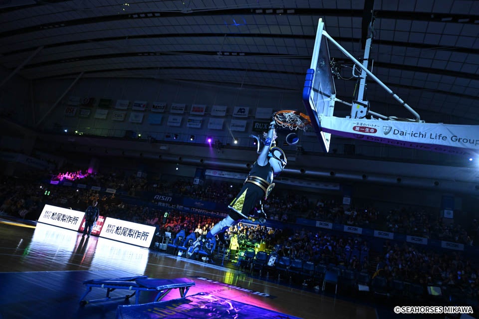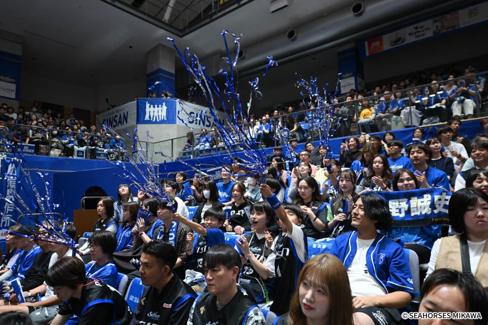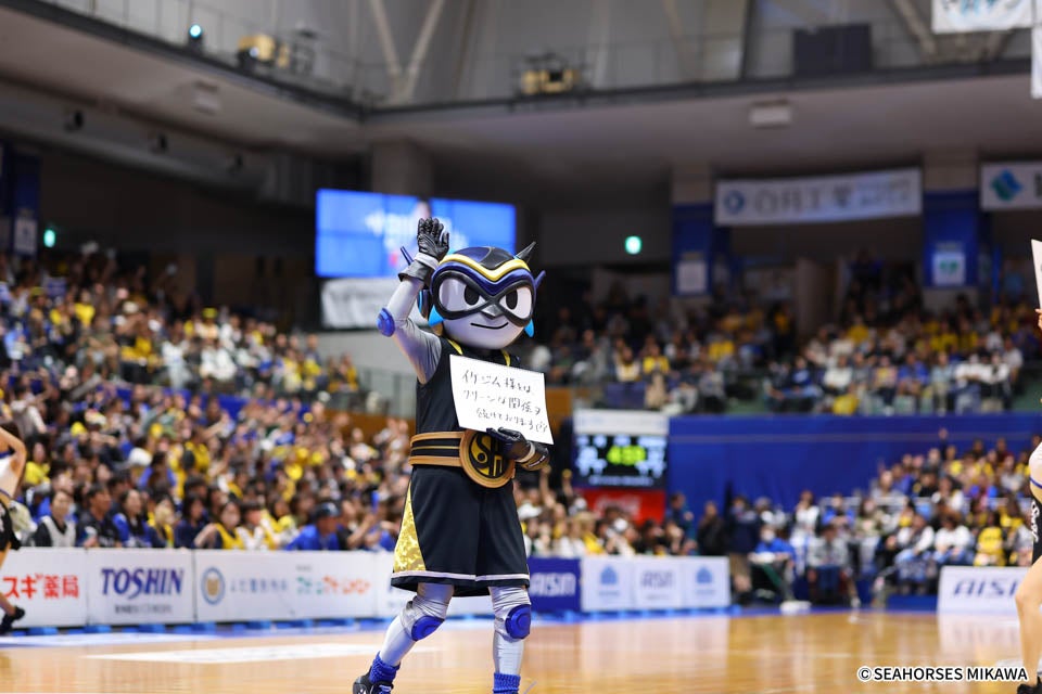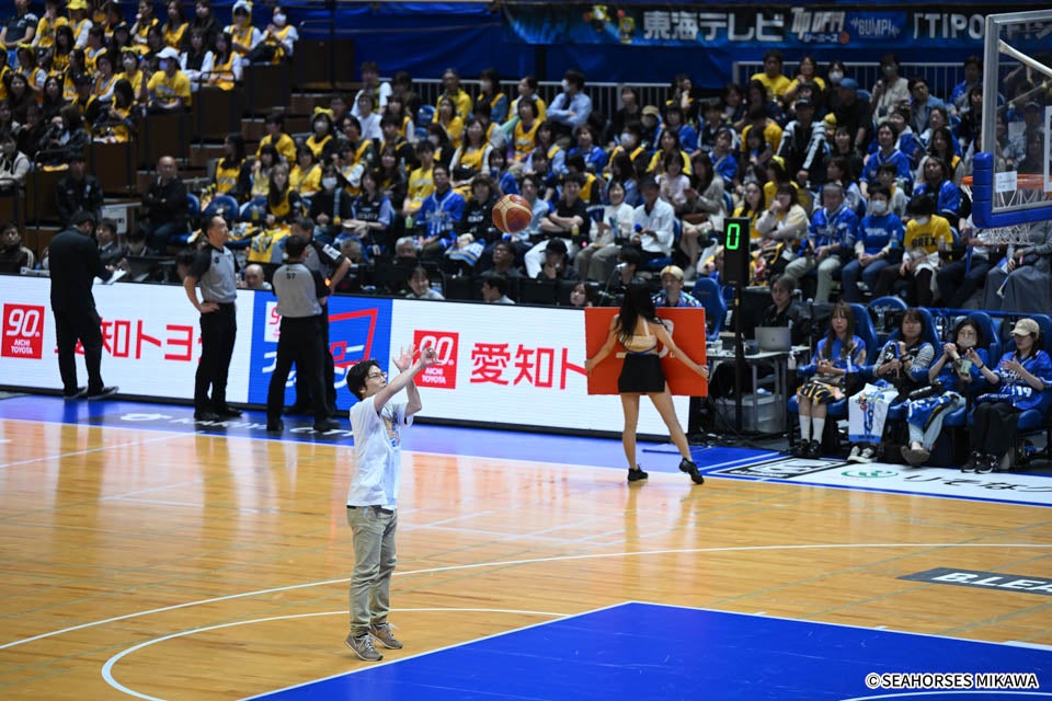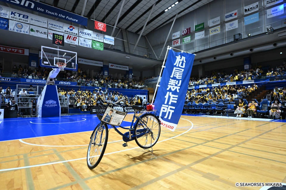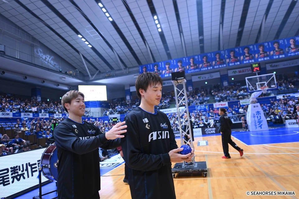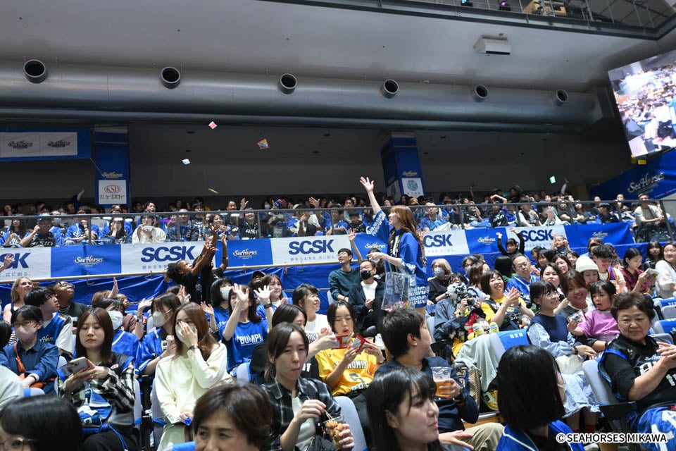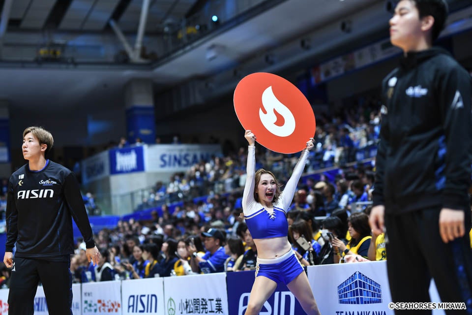 また、先着2,500名にオリジナルハリセンが配布され、今季初となるウィングアリーナ刈谷で迎えたホーム戦は、ファン・ブースターの“大青援“の後押しも受け、大いに盛り上がった。