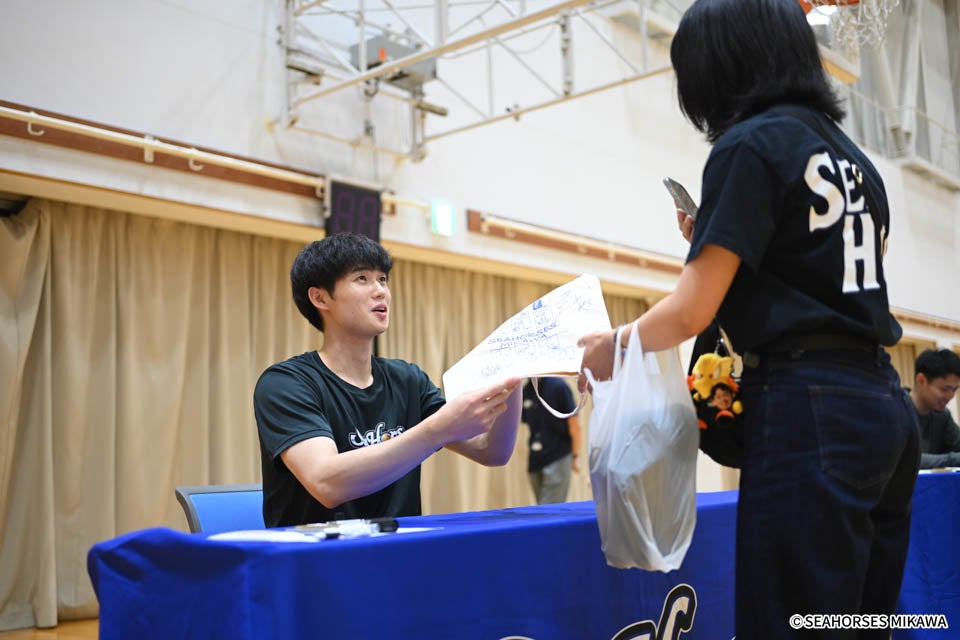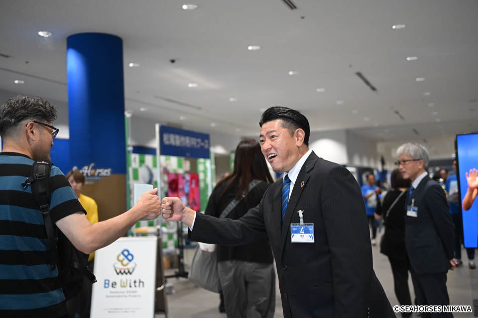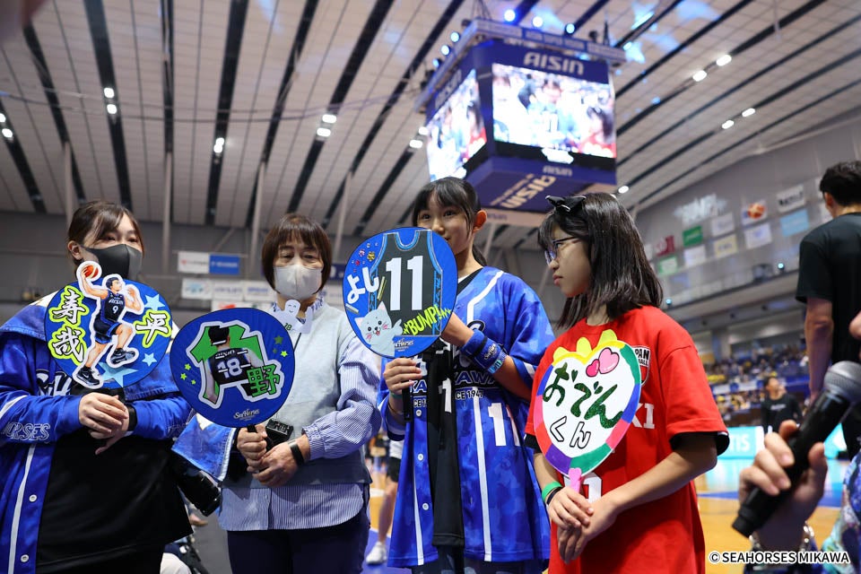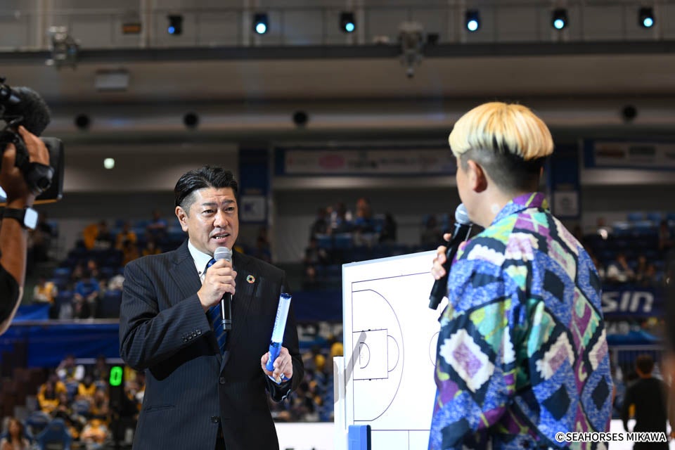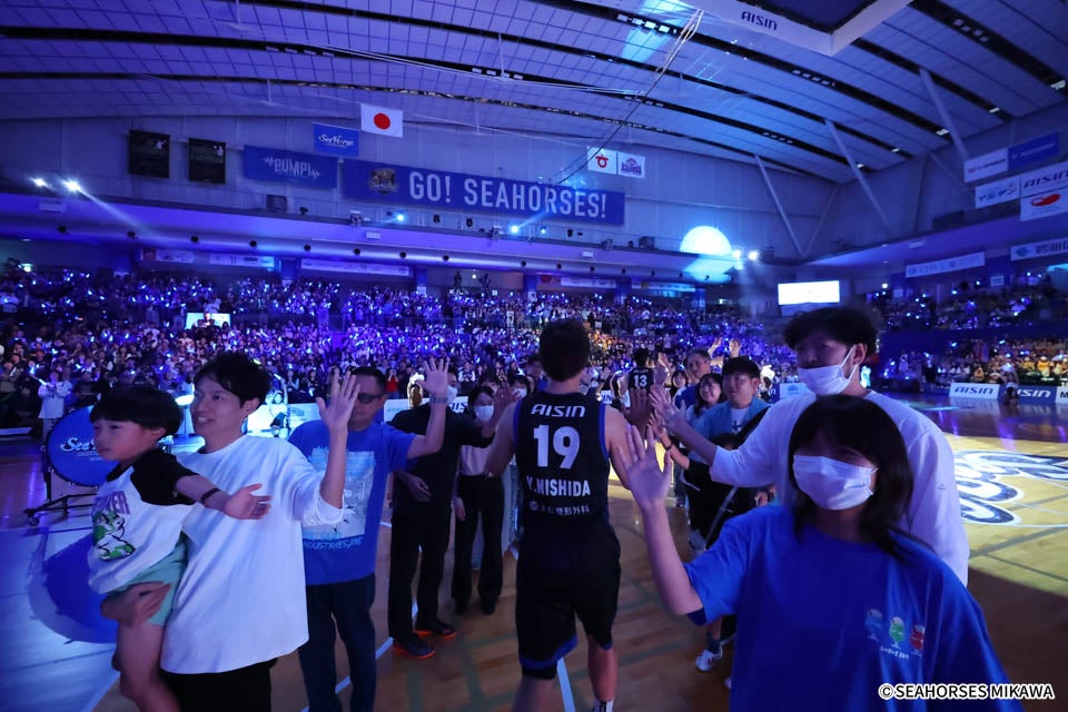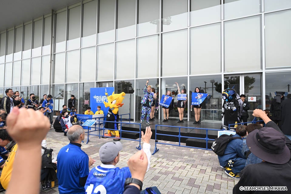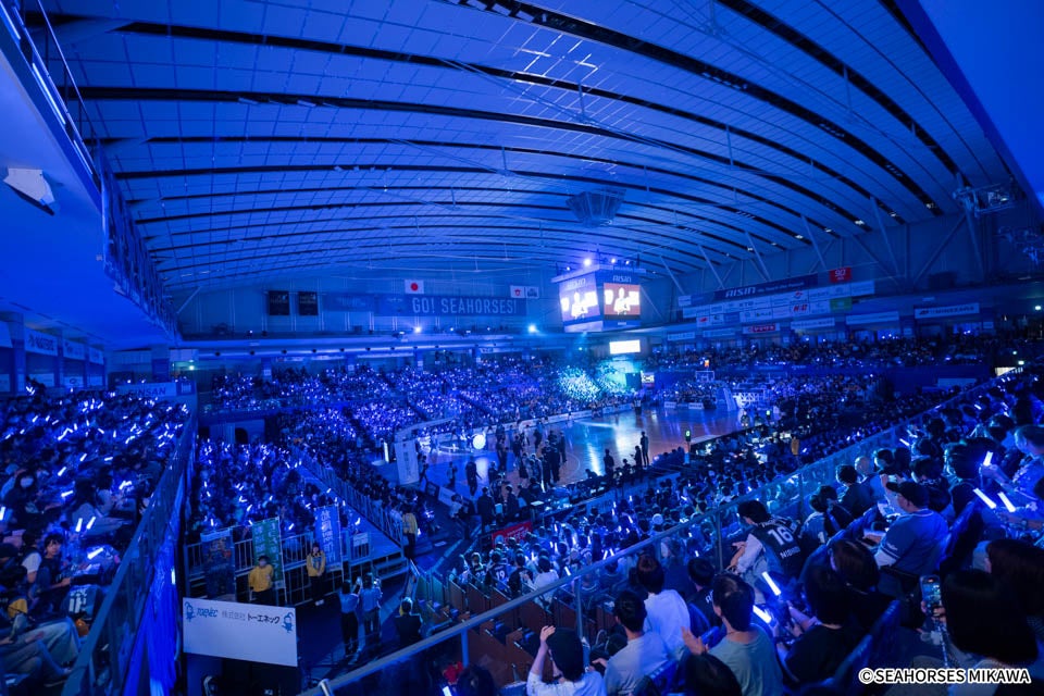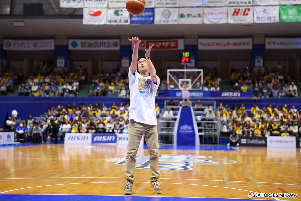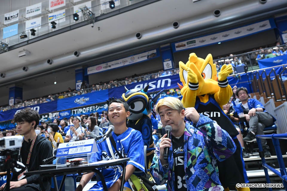 また、先着2,500名にオリジナルハリセンが配布され、今季初となるウィングアリーナ刈谷で迎えたホーム戦は、ファン・ブースターの“大青援“の後押しも受け、大いに盛り上がった。