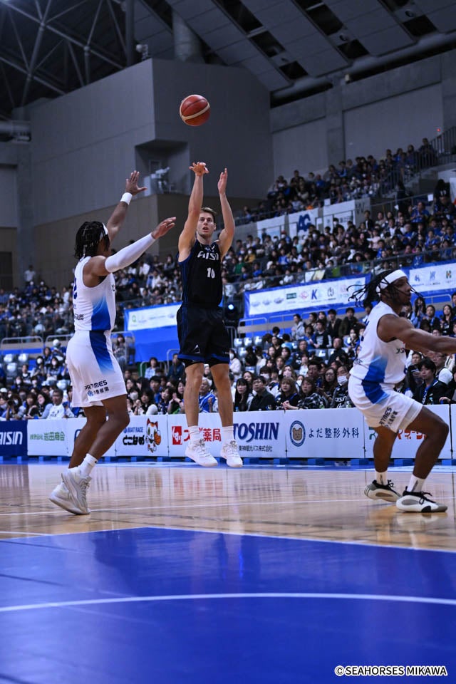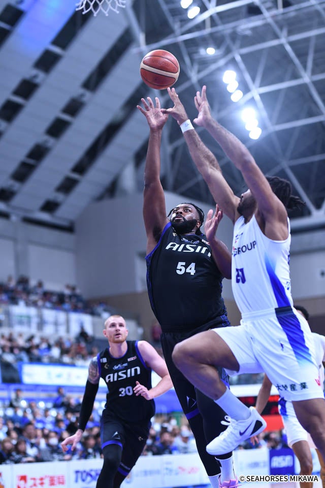 スカイホール豊田で行われたファイティングイーグルス名古屋との“愛知ダービー“は、ガードナーが3Pシュート6本を含む35得点の大爆発。一時はFE名古屋に9点リードされるも、怪我から復帰したシェーファーが加わったセカンドユニットの4連続3Pシュートで逆転。リードを守り切り、5点差で勝利した。