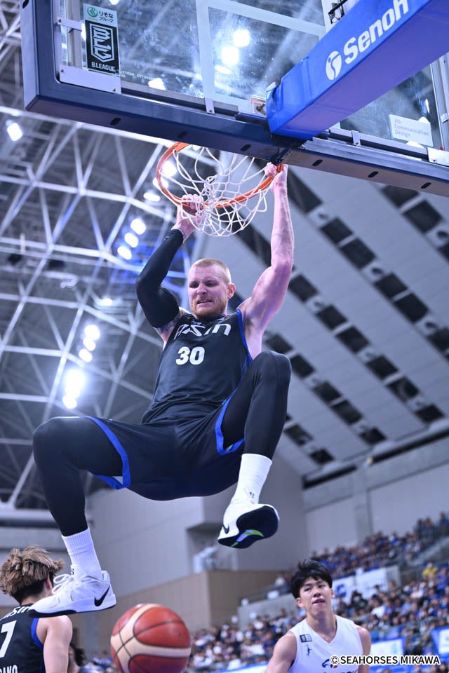 今季初の連勝を狙ったファイティングイーグルス名古屋との“愛知ダービー” Game2。1Qでリードを奪うと、その後は固いゾーンディフェンスから速いオフェンスを展開してリードを保つ。ホワイトの18得点12リバウンド2アシストを筆頭に5人が二桁得点をマークし、16点差で快勝した。