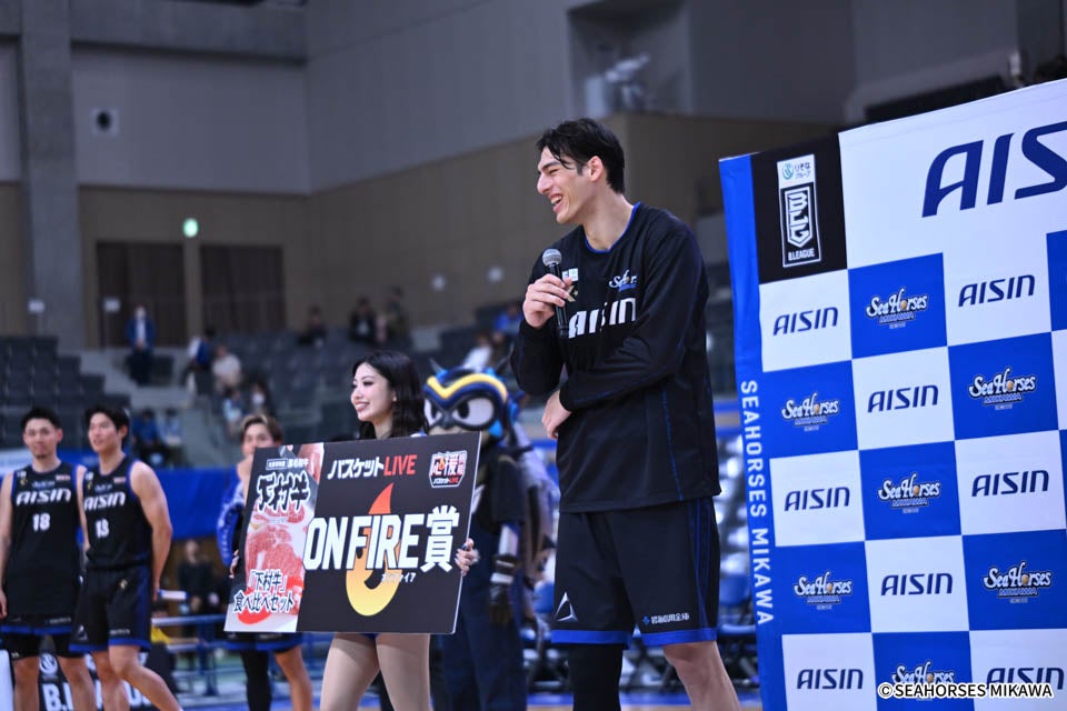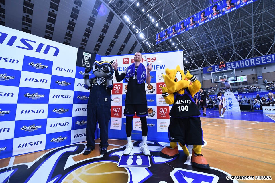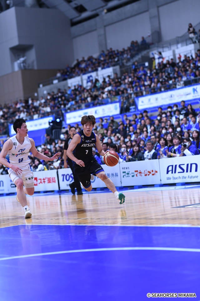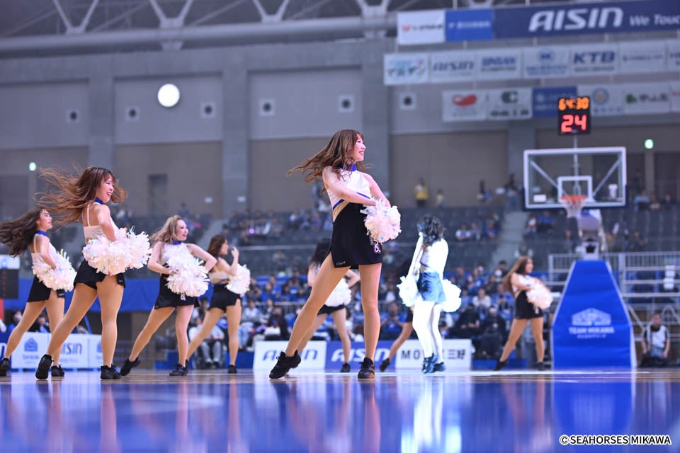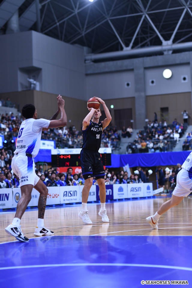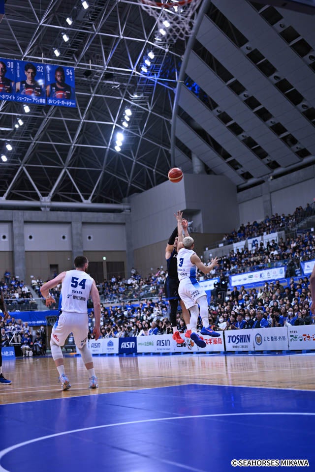 FE名古屋のタイムアウト後、#22ジョーンズの3Pシュートなどで得点を重ねられ、残り1分半に5点差に迫られるが、三河タイムアウトで修正を図ると、#7長野のアシストで#10レイマンの3Pシュートが火を吹く。