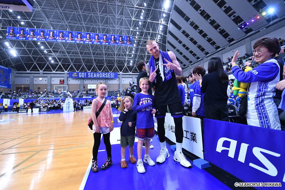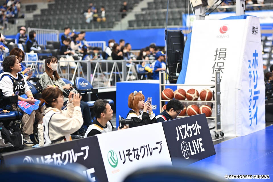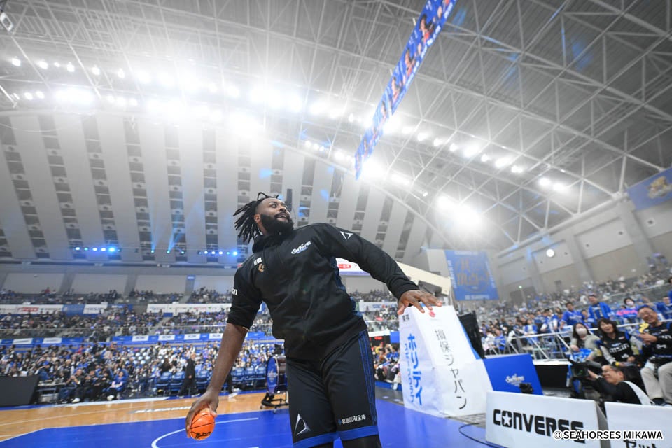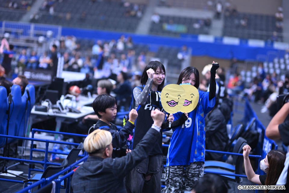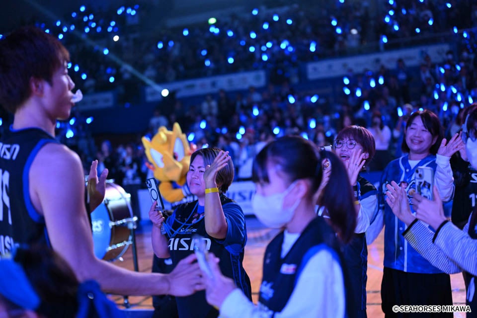 残り1分には、#54ガードナーのバックダウンに合わせて勢いよくカットインした#30ホワイトがダメ押しのダンクを叩き込んで会場を沸かせる。さらに#30ホワイトのオフェンスリバウンド、ゴール下の連続得点で89-73と突き放し、今季初の連勝を飾った。