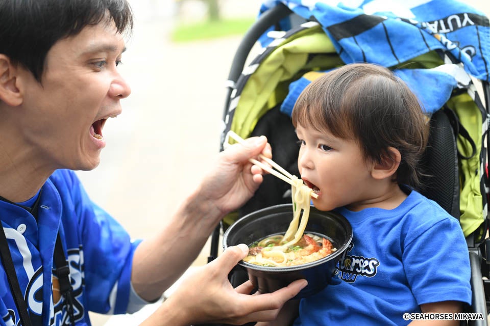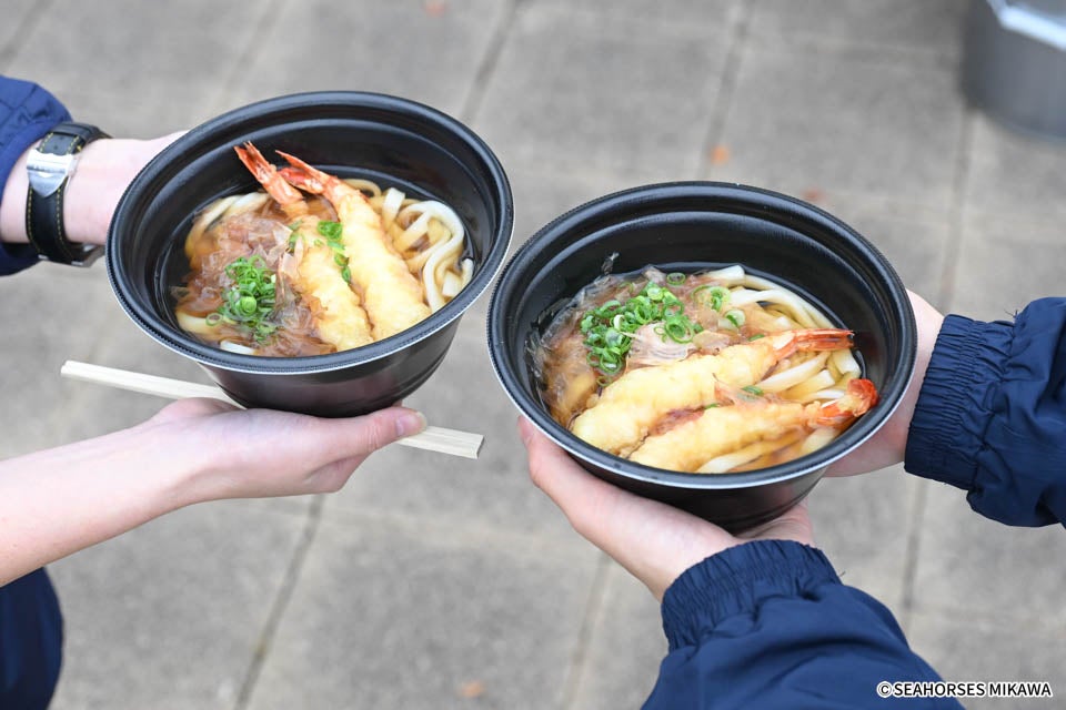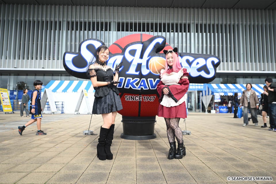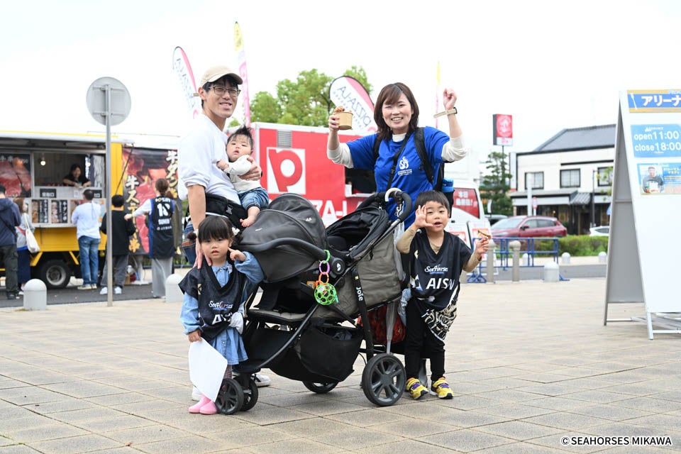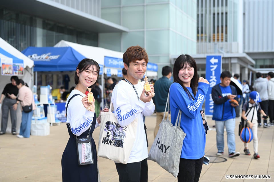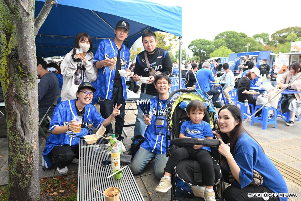 会場には香嵐渓フォトスポットやスカイホール豊田恒例の「ふわふわトランポリン」も登場。たくさんのファン・ブースターがトランポリンで遊んだり、シーホースくん、タツヲのパネルと共に香嵐渓をバックに写真を撮ったりと、試合前のひと時を楽しんでいた。