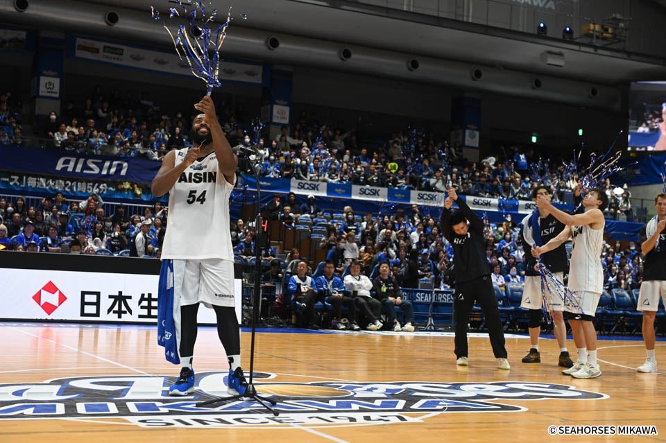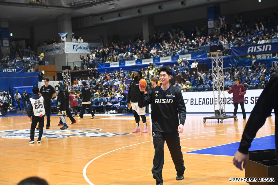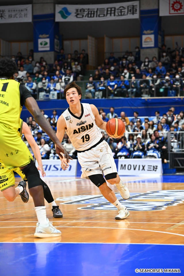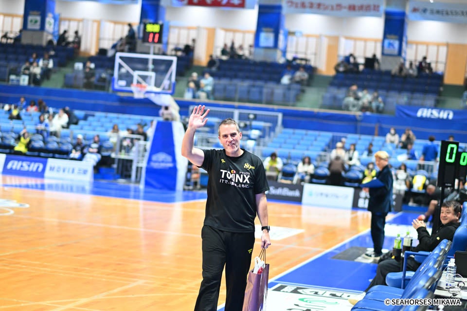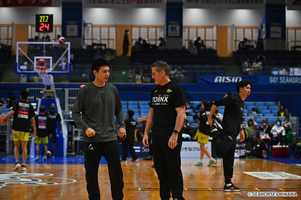 昨シーズンまでシーホース三河のACを務めていたタシュニーHC率いる仙台89ERSとの初顔合わせ。B1通算11000得点の偉業を達成した大黒柱のガードナーを中心に、終始三河ペースで試合を進め、今季初の100点ゲームで快勝した。