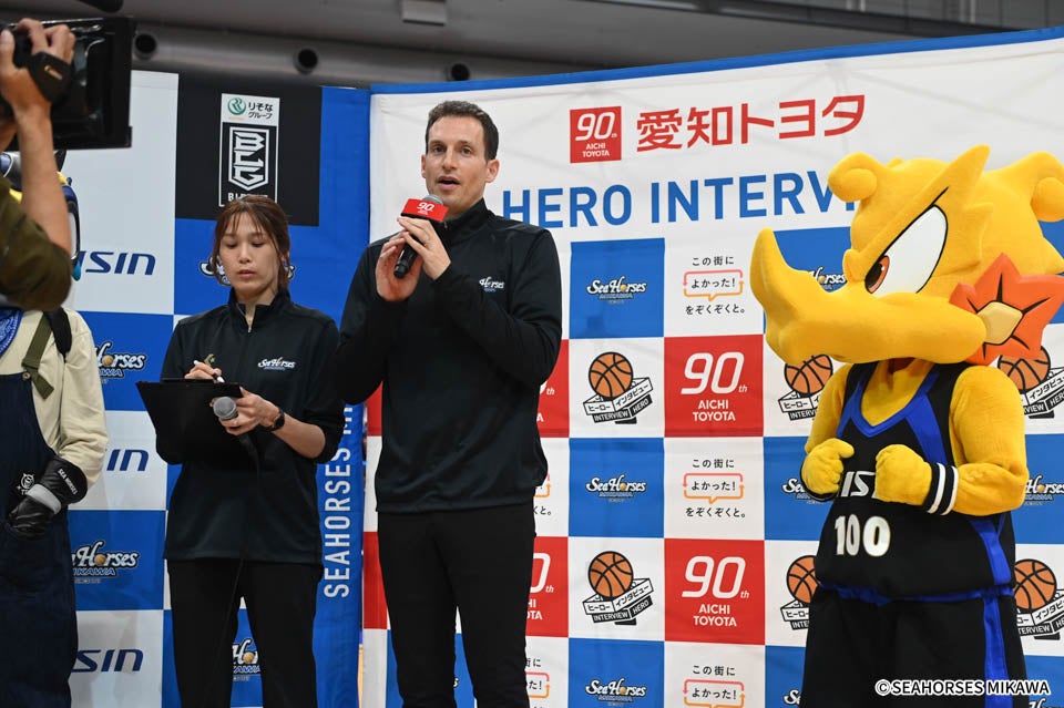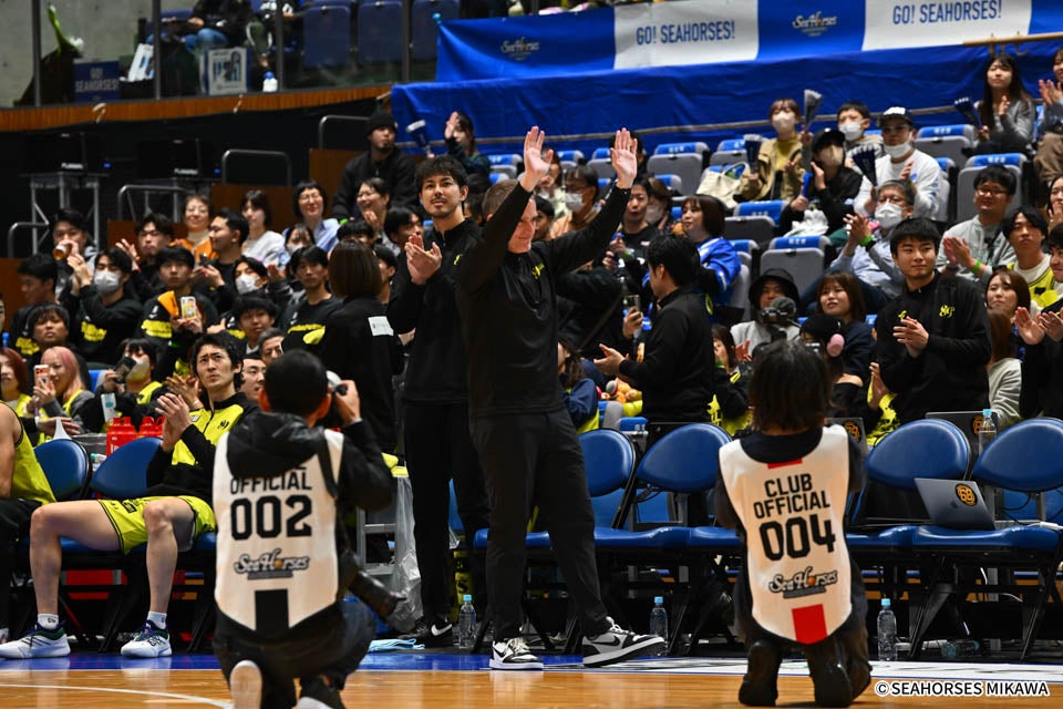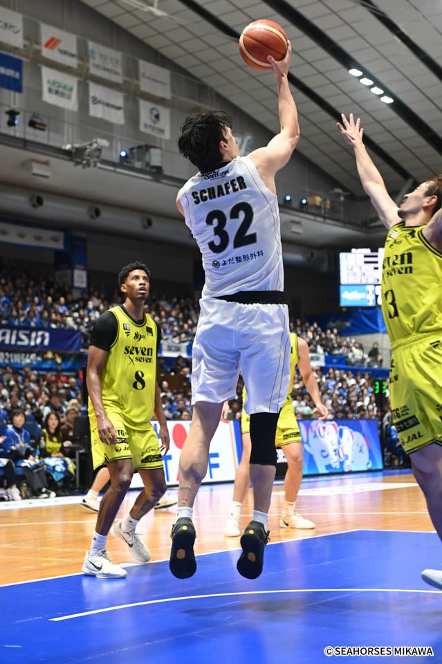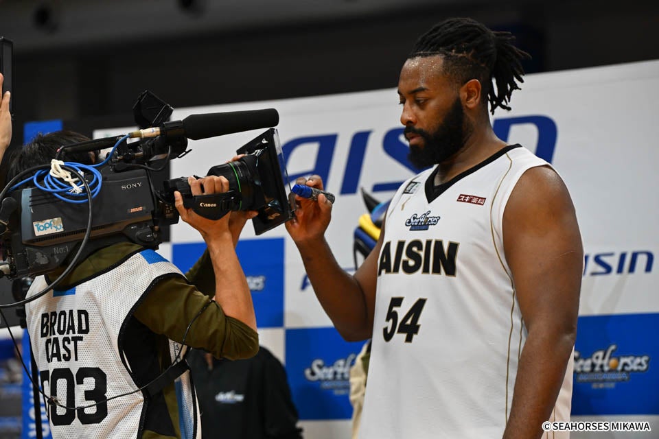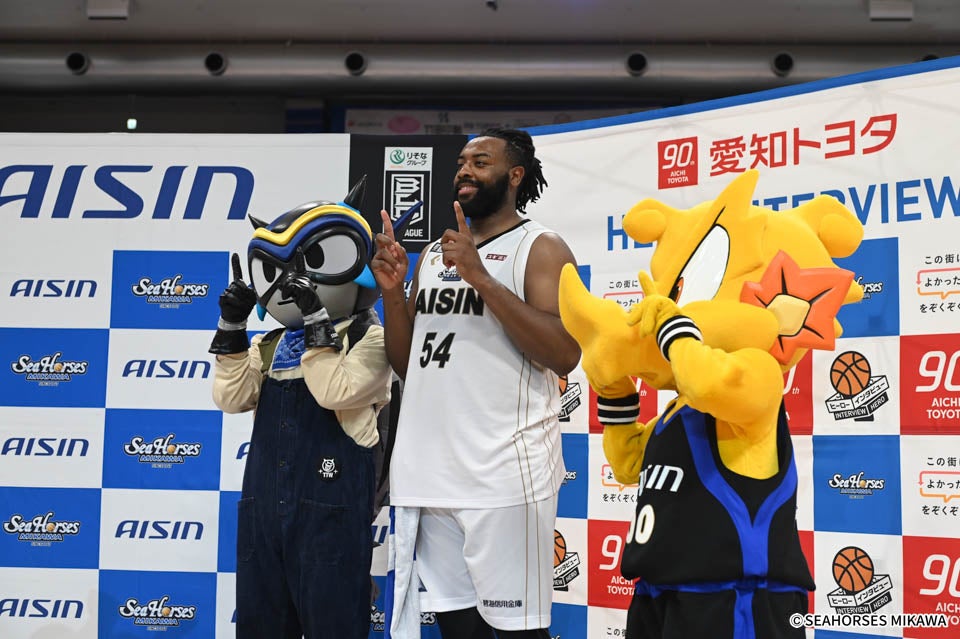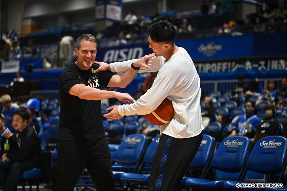 昨シーズンまでシーホース三河のACを務めていたタシュニーHC率いる仙台89ERSとの初顔合わせ。B1通算11000得点の偉業を達成した大黒柱のガードナーを中心に、終始三河ペースで試合を進め、今季初の100点ゲームで快勝した。