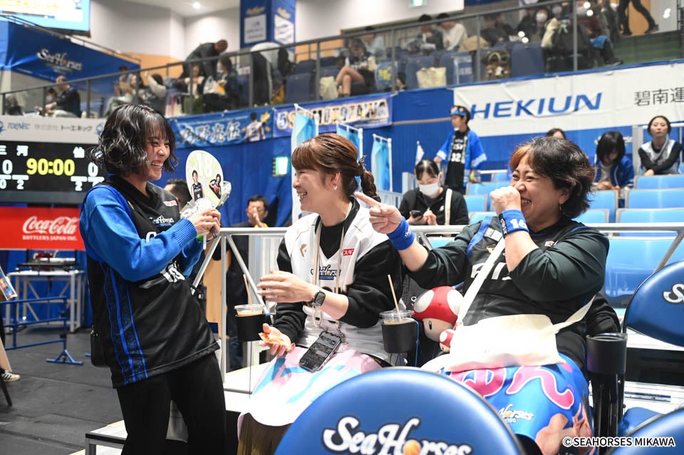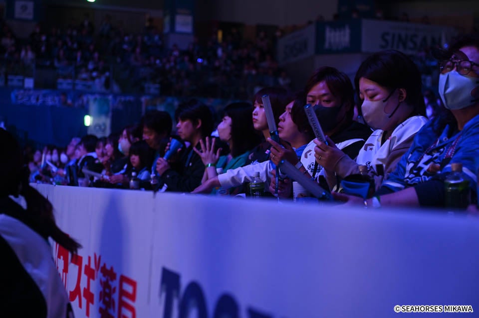 オフィシャルタムアウト明け、#1ケネディがフリースロー、ゴール下の連続得点をマーク。集中したゾーンディフェンスで仙台に反撃の糸口を与えず、#19西田(優)のアタック、#1ケネディの3Pシュートと最後まで攻め手を緩めず、残り1分から#27石井が連続で3Pシュートを射抜いて、今季初の100点ゲームで快勝した。