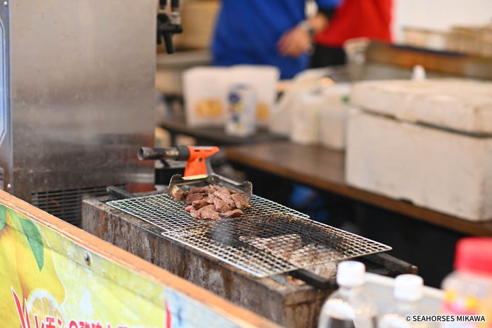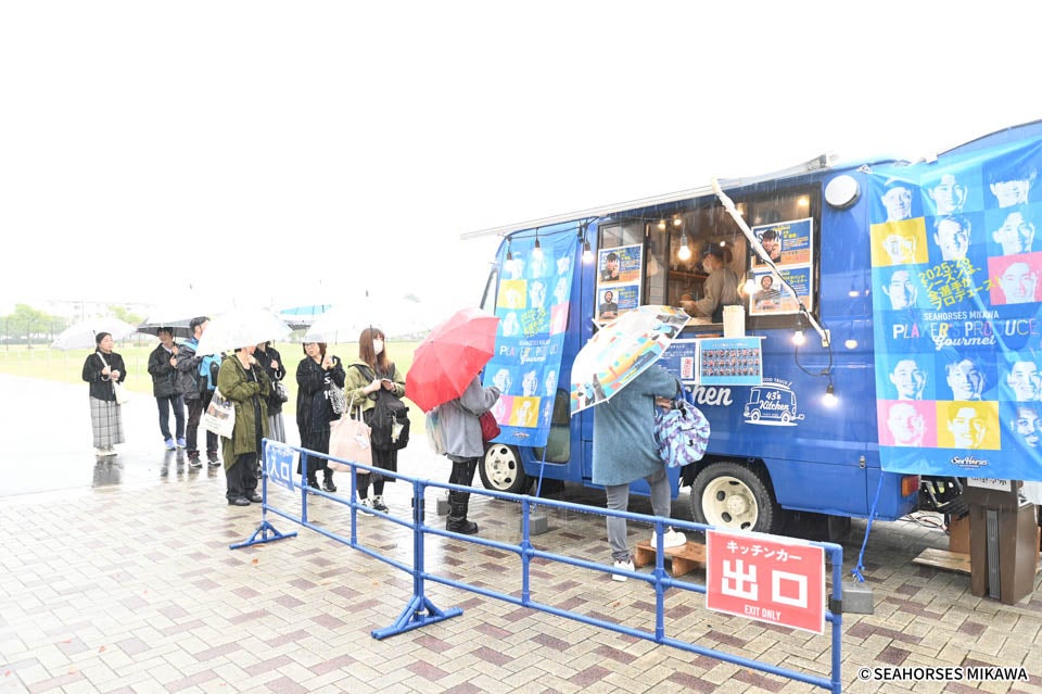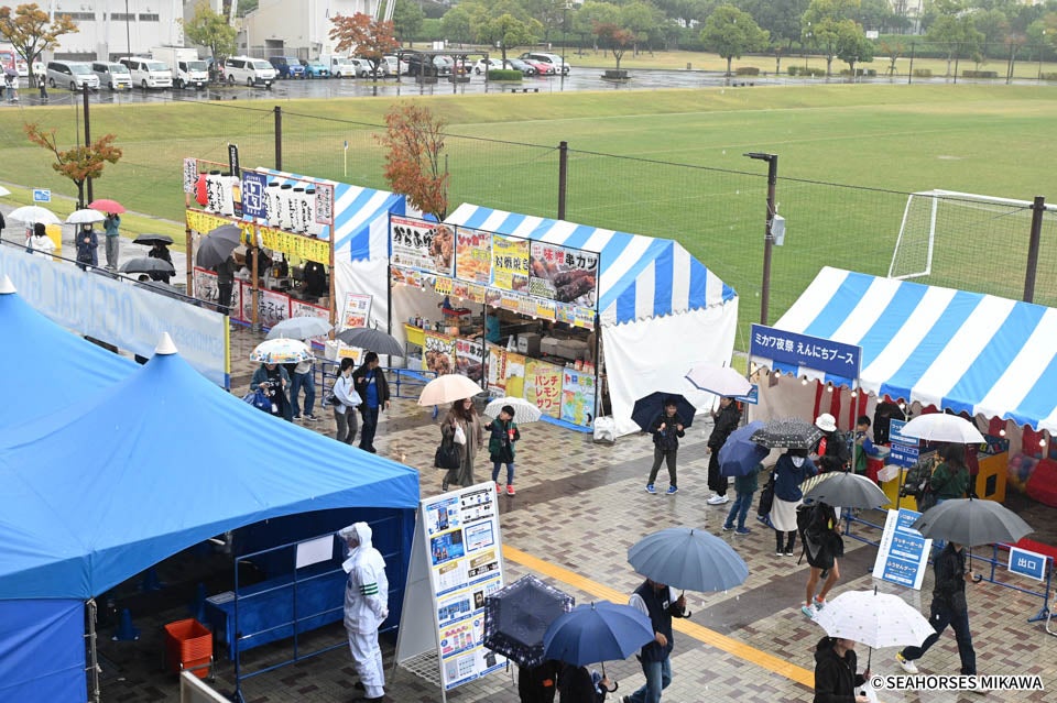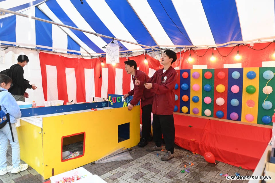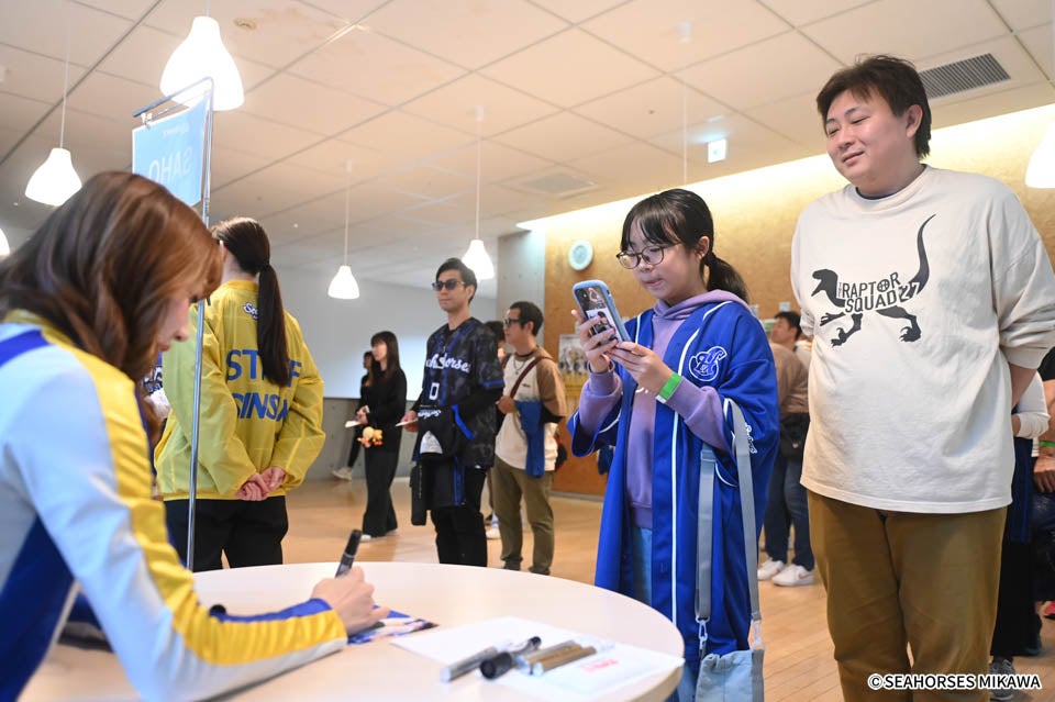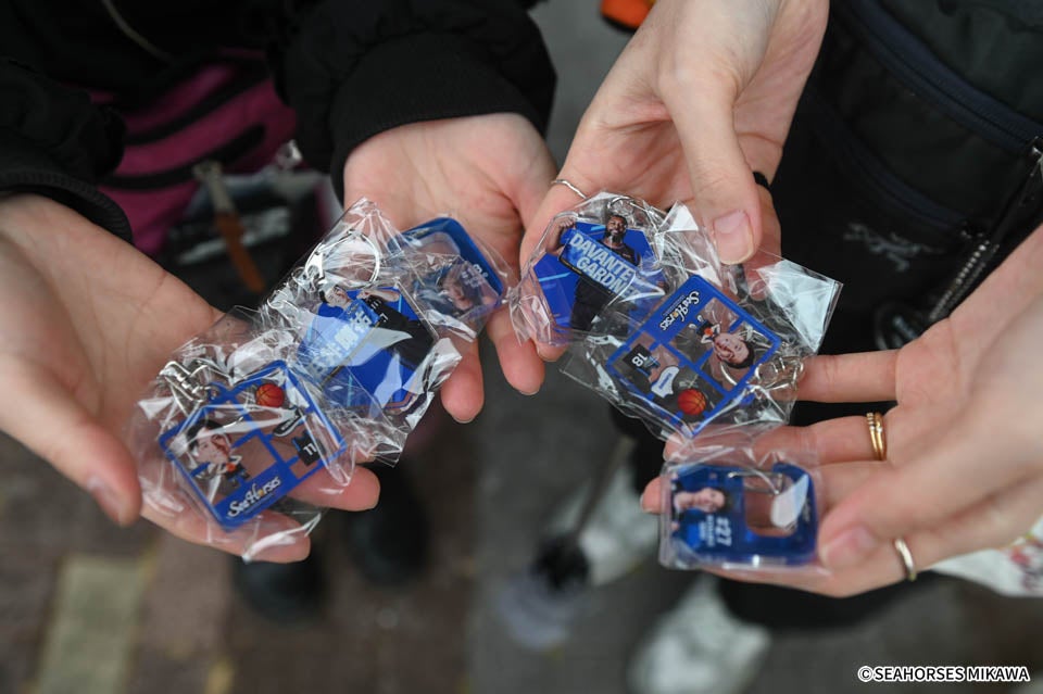 アイシンPresents シーホース三河ホームゲームのテーマは「ファミリーDAY」。ウィングアリーナ刈谷の前では、愛知トヨタ「CROWN EXHIBITION」を開催。リッチマンHCも愛用するCROWNが4モデル勢揃いした光景は圧巻で、雨の中にもかかわらず多くのファン・ブースターが間近で見たり、試乗したりして、CROWNを体感していた。
