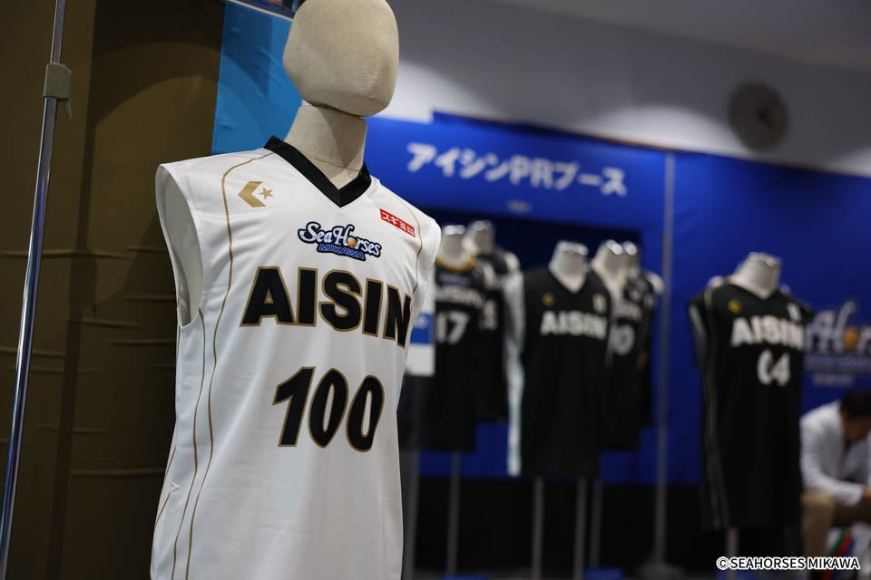 アイシンPRブースには歴代のユニフォームがずらりと展示され、選手たちは天皇杯4連覇を達成した2004-2005シーズンをベースにした「復刻ユニフォーム」を着用して試合を戦った。