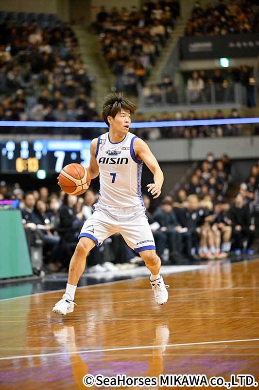 スターティング5は、#7長野、#10レイマン、#13須田、#19西田(優)、#54ガードナー。