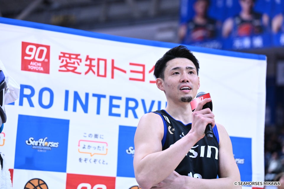Bリーグの試合が3週間無かった中から、今日たくさんの方に来ていただいて本当に滋賀のブースターの皆さんも含め素晴らしい雰囲気の中でゲームができたことを3週間ぶりだからこそ嬉しく思っています。