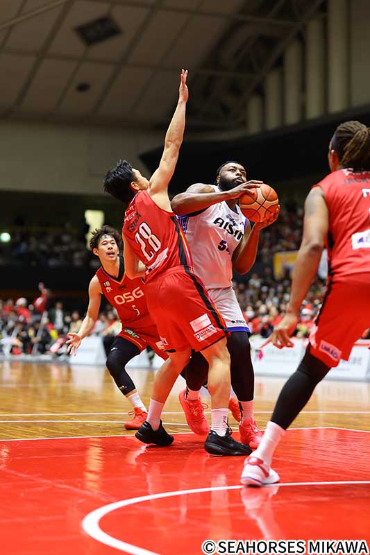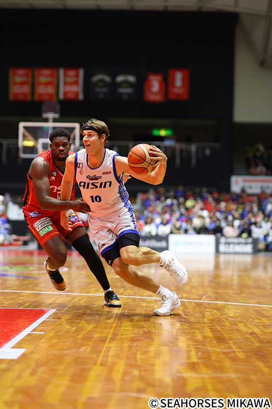 三遠ネオフェニックスとの”三河ダービー”はGame1と打って変わり、中・外から効率良く得点を積み重ねて1Qに大量リードを築く。ディフェンスの強度も終始高め、一度も三遠に逆転を許さず快勝、”三河ダービー”を連勝で終えた。